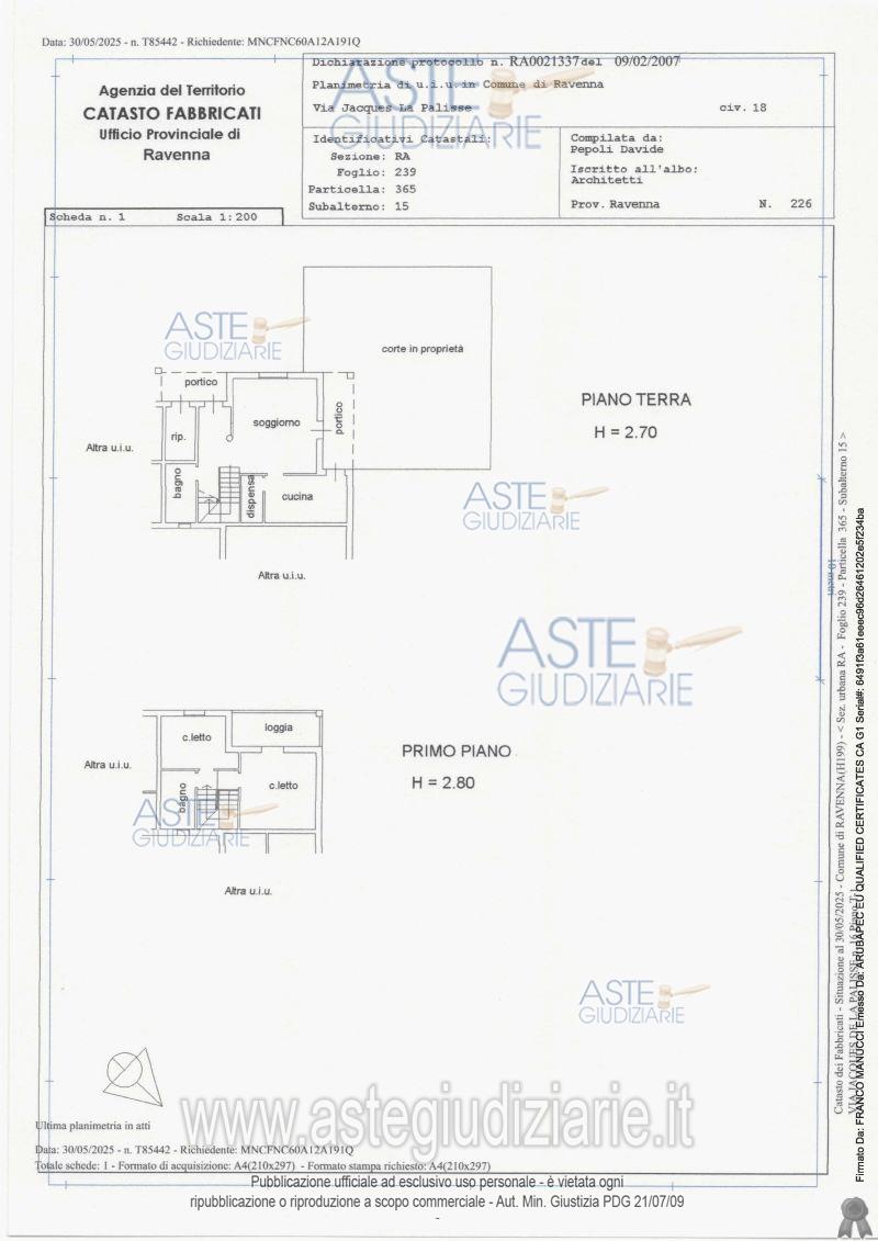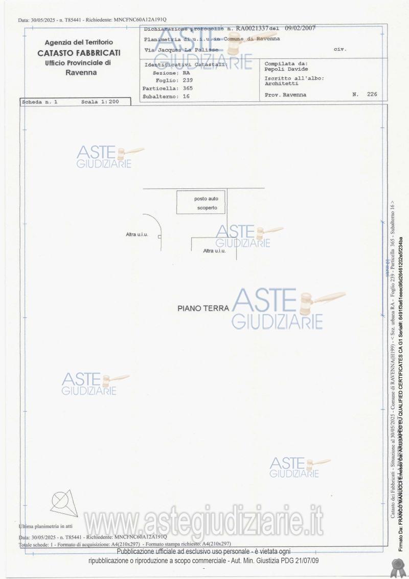 Vendita all'asta Senza incanto, con gara telematica asincrona - LOTTO UNICO: Appartamento distribuito su due piani fuori terra, posto autoscoperto al piano terra e corte pertinenziale. Prezzo base € 96.000,00 (offerta minima € 72.000,00). Data inizio operazioni di vendita: 14/04/2026 ore 09:00. Giudice Dott. Paolo Gilotta. Professionista delegato alla vendita Dott. Maria Rosaria Monticelli Cuggiò. Custode Giudiziario Dott. Maria Rosaria Monticelli Cuggiò - Email "astenotai@associazionenotai.it". Rif. Tribunale di Ravenna - Espropriazione immobiliare (cartabia) n. 39/2025
