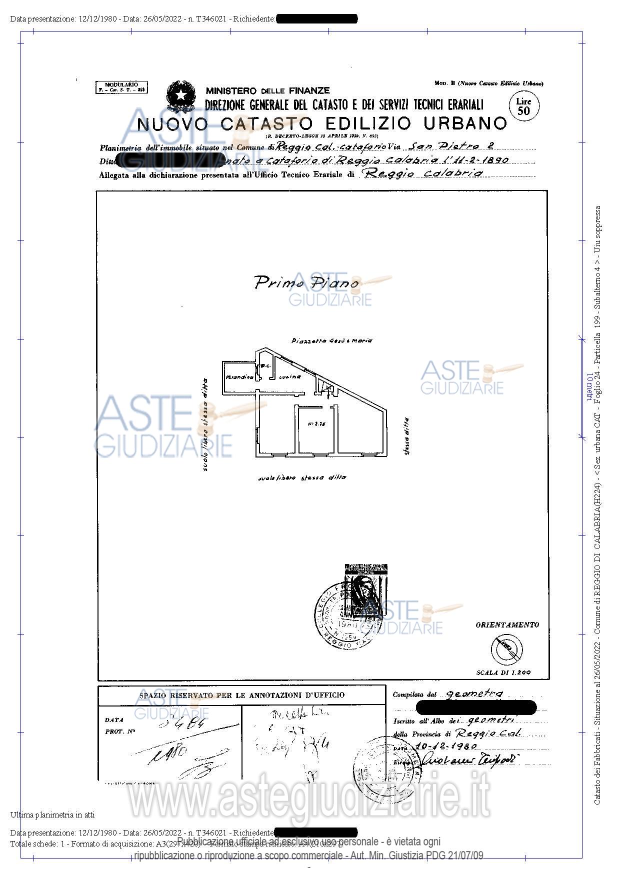 Vendita all'asta Senza incanto, con gara telematica asincrona - LOTTO UNICO: Unità immobiliare facente parte di un fabbricato di maggiore consistenza consistente in un appartamento per civile abitazione occupante l’intera superficie del primo piano (secondo fuori terra), composto di tre vani, cucina e bagno, corrispondenti a cinque vani catastali. Prezzo base € 8.424,32 (offerta minima € 6.318,24). Data inizio operazioni di vendita: 14/04/2026 ore 09:00. Giudice Dott. Francesco Maria Antonio Buggè. Professionista delegato alla vendita Dott. Giuseppina Garasci - Email "giusy.garasci@gmail.com"; Tel. 3930790900. Custode Giudiziario Dott. Giuseppina Garasci - Email "giusy.garasci@gmail.com"; Tel. 3930790900. Rif. Tribunale di Reggio di Calabria - Esecuzione immobiliare post legge 80 n. 10/2022