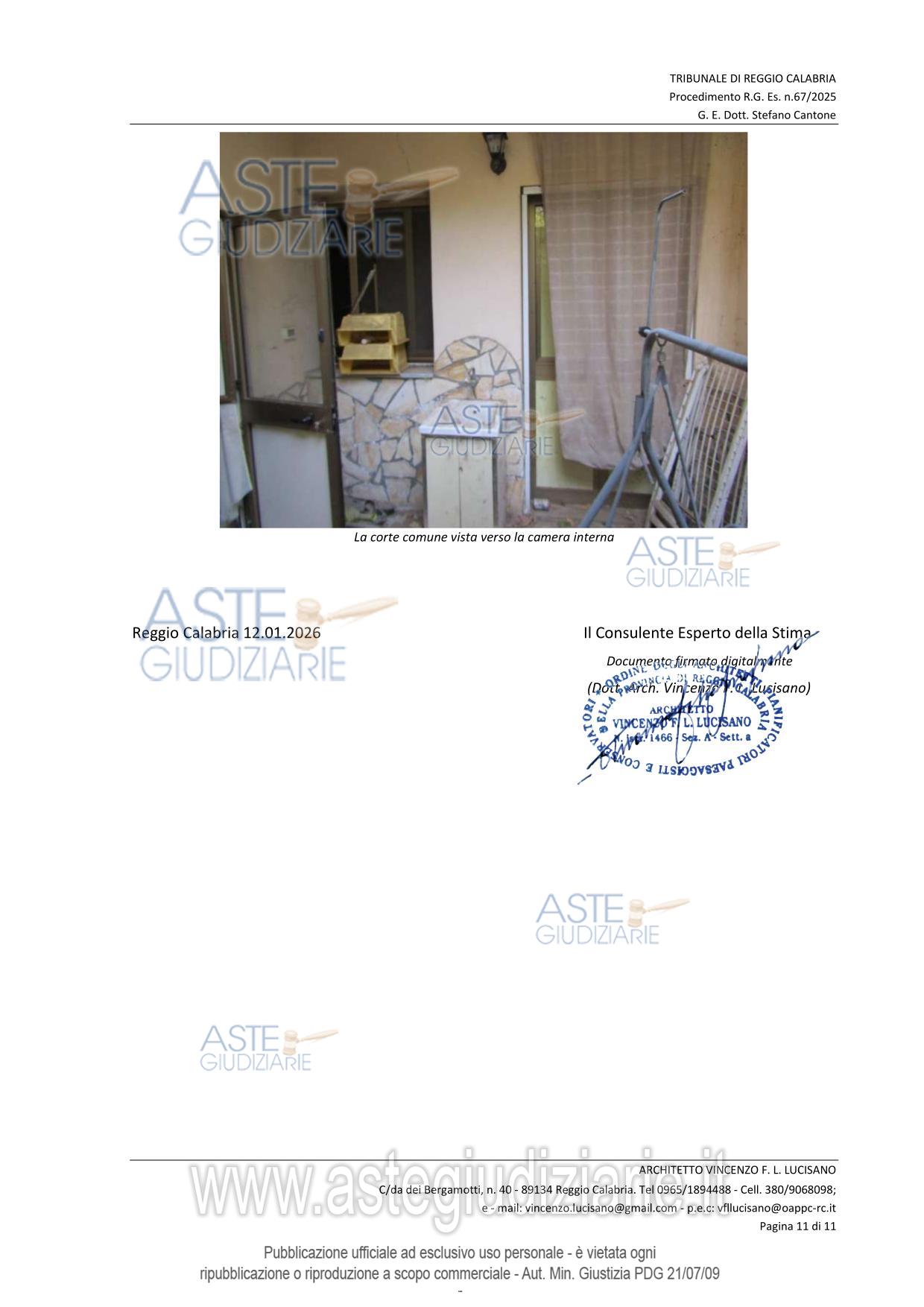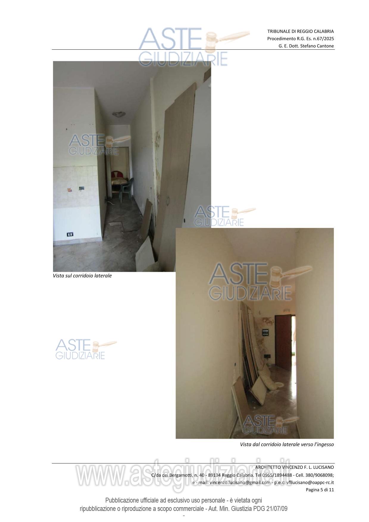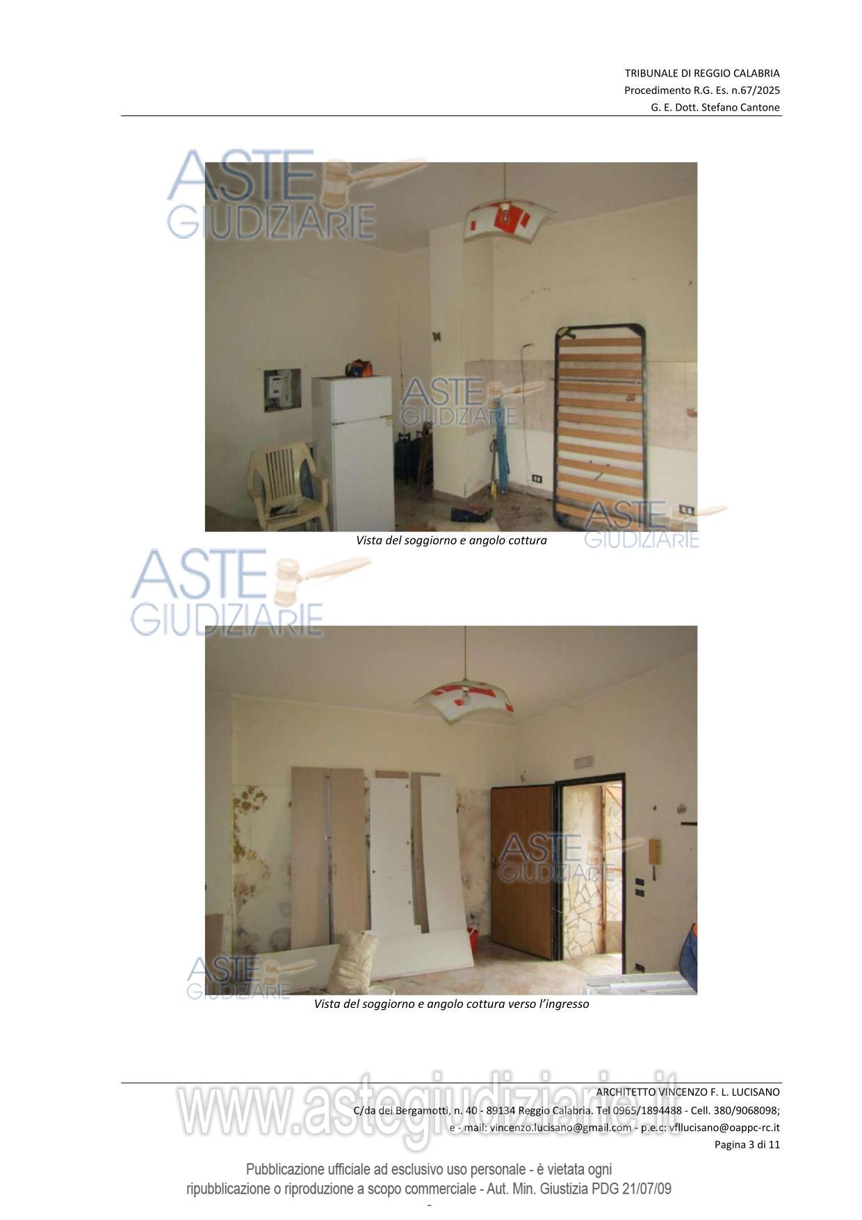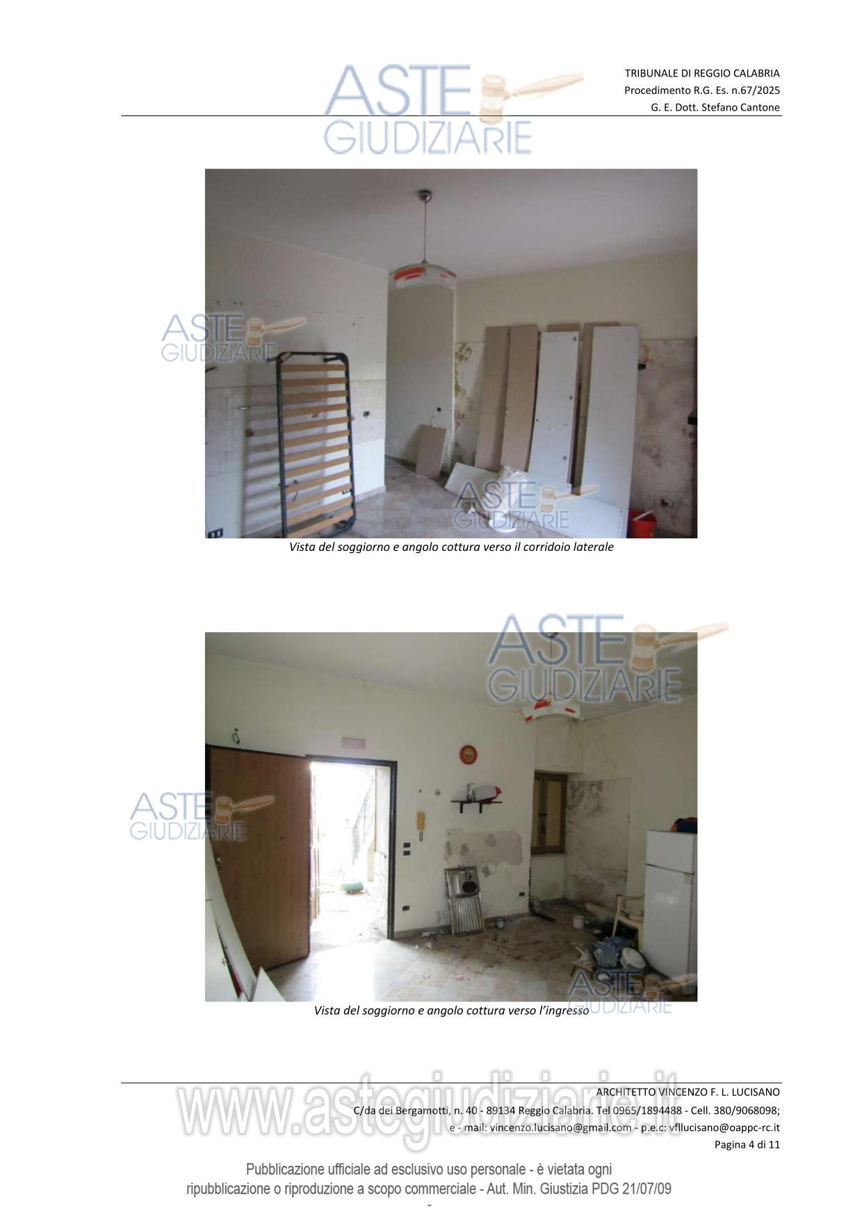 Vendita all'asta Senza incanto, con gara telematica asincrona - LOTTO UNICO: Appartamento categoria catastale A/4, classe 2, consistenza 3,5 vani, rendita catastale € 131,95, superficie catastale 73 mq, superficie escluse aree scoperte 70 mq, Lungomare Consolato Paolo Latella n. 43/A, piano T. Prezzo base € 31.534,00 (offerta minima € 31.534,00). Data inizio operazioni di vendita: 07/07/2026 ore 10:00. Giudice Dott. Stefano Cantone. Professionista delegato alla vendita Dott. Giovanna Polimeni - Email "giovannapolimeni31@gmail.com"; Tel. 0965623653. Custode Giudiziario Dott. Giovanna Polimeni - Email "giovannapolimeni31@gmail.com"; Tel. 0965623653. Rif. Tribunale di Reggio di Calabria - Esecuzione immobiliare post legge 80 n. 67/2025
