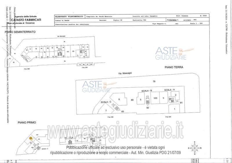 Vendita all'asta Senza incanto, con gara telematica asincrona - LOTTO 2: Право полной собственности 1/1 на квартиру под жилую квартиру, категория A/2, расположенную в жилом здании, находящемся в городе Ренде, местечко Кваттромилья, улица П. Масканьи, д. 2, подъезд C, первый этаж, квартира 3, из 3 кадастровых помещений. Недвижимость, состоящая из входа в кухню-столовую (хотя не видны подключения для раковины и кухонного оборудования), спальни, ванны, незастекленного кладового помещения и прихожей - общая площадь 49,25 кв.м. Prezzo base € 52.061,00 (offerta minima € 52.061,00). Data inizio operazioni di vendita: 21/01/2026 ore 10:00. In caso di più offerte valide si procederà a gara che inizierà il 21/01/2026 ore 10:00 e terminerà il 28/01/2026 ore 12:00. Professionista delegato alla vendita Dott. Salvatore Impieri - Tel. 0982 972680-0982 972312. Rif. Tribunale di Cosenza - Liquidazione coatta n. 125/2024