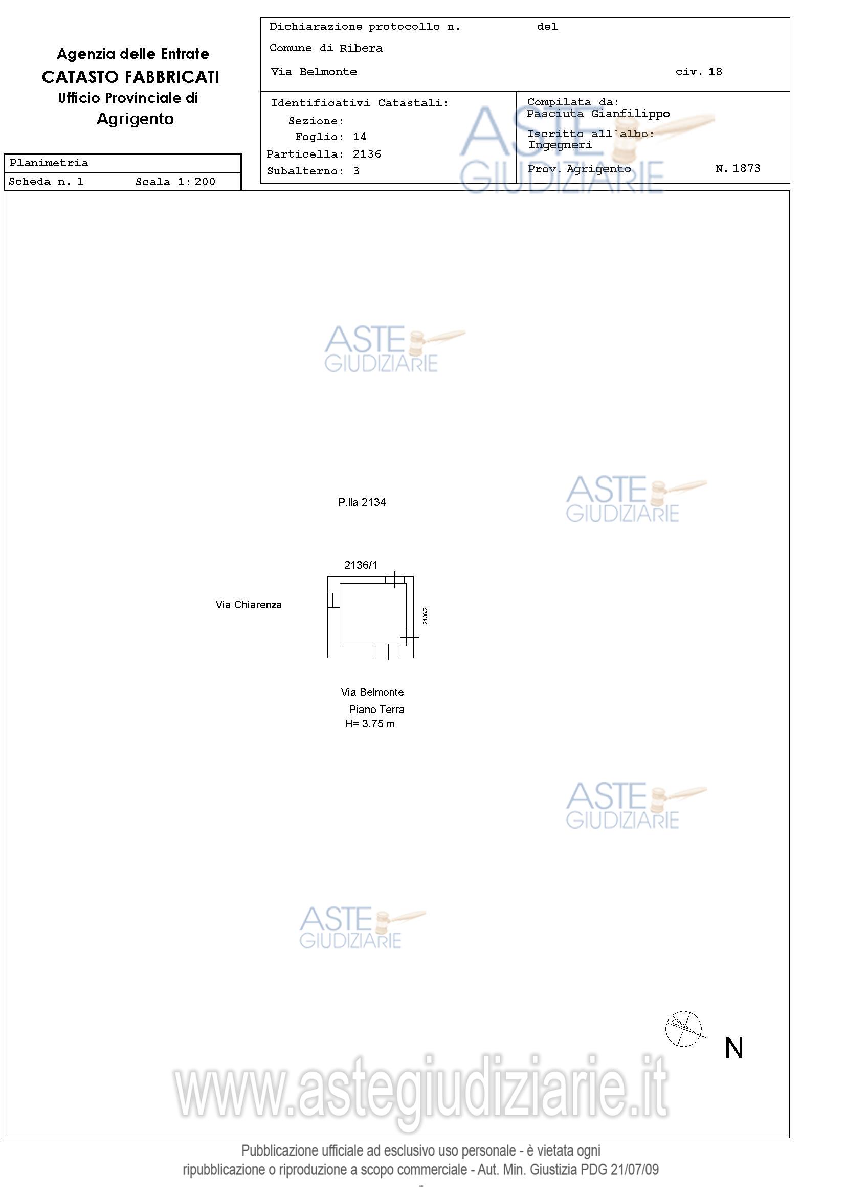 Vendita in attesa dell'emissione del nuovo bando d'asta. LOTTO UNICO: Quota pari ad 1/1 di fabbricato per civile abitazione, posto all'angolo tra via Belmonte e via Chiarenza con accessi da entrambe le vie, composto da tre elevazioni fuori terra. Ultimo prezzo base € 18.984,38 (offerta minima € 14.238,28). Giudice Veronica Messana. Professionista delegato alla vendita Avv. Antonio Campisciano - Email "a.campisciano@virgilio.it"; Cell. 3398647181. Custode Giudiziario Avv. Antonio Campisciano - Email "a.campisciano@virgilio.it"; Cell. 3398647181. Rif. Tribunale di Sciacca - Esecuzione immobiliare post legge 80 n. 51/2013