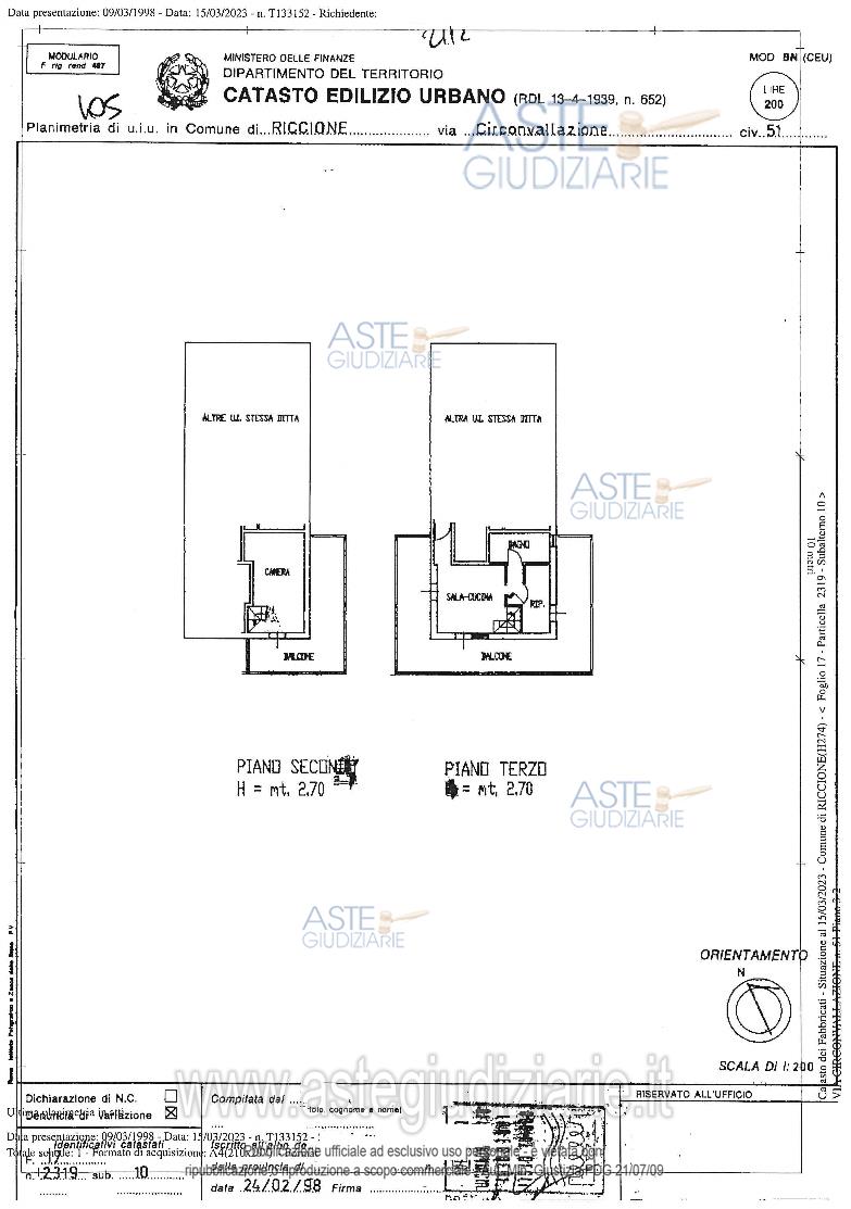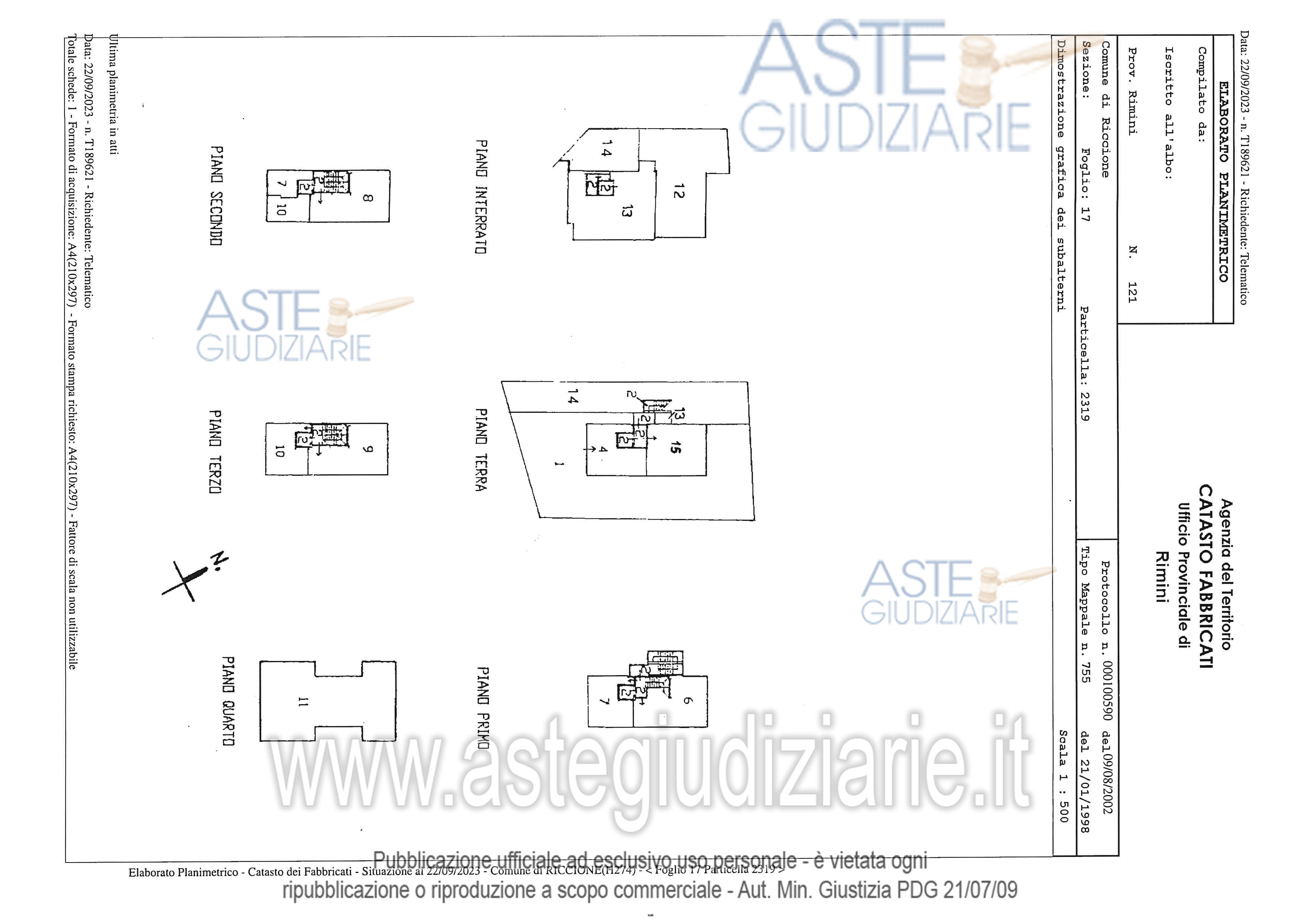 Vendita all'asta Senza incanto - LOTTO UNICO:  Comune di Riccione (RN) – Frazione Paese - al viale Circonvallazione civico cinquantuno (n. 51), edificato su terreno tra coperto e scoperto pertinenziale della superficie catastale di mq. 443 (in mappa al Foglio 17, Particella 2319, Ente Urbano di are 04:43), costituito da un appartamento per civile abitazione ai piani secondo e terzo, uniti da scala di collegamento interna. Prezzo base € 90.000,00 (offerta minima € 67.500,00). Data vendita 19/11/2025 ore 09:30. Professionista delegato alla vendita Avv. Simona Dellarosa. Custode Giudiziario Avv. Simona Dellarosa - Email "simona@studiolegalefesta.it".  Rif. Tribunale di Rimini - Contenzioso civile n. 3323/2023