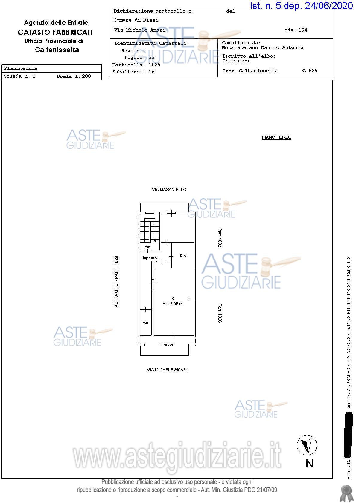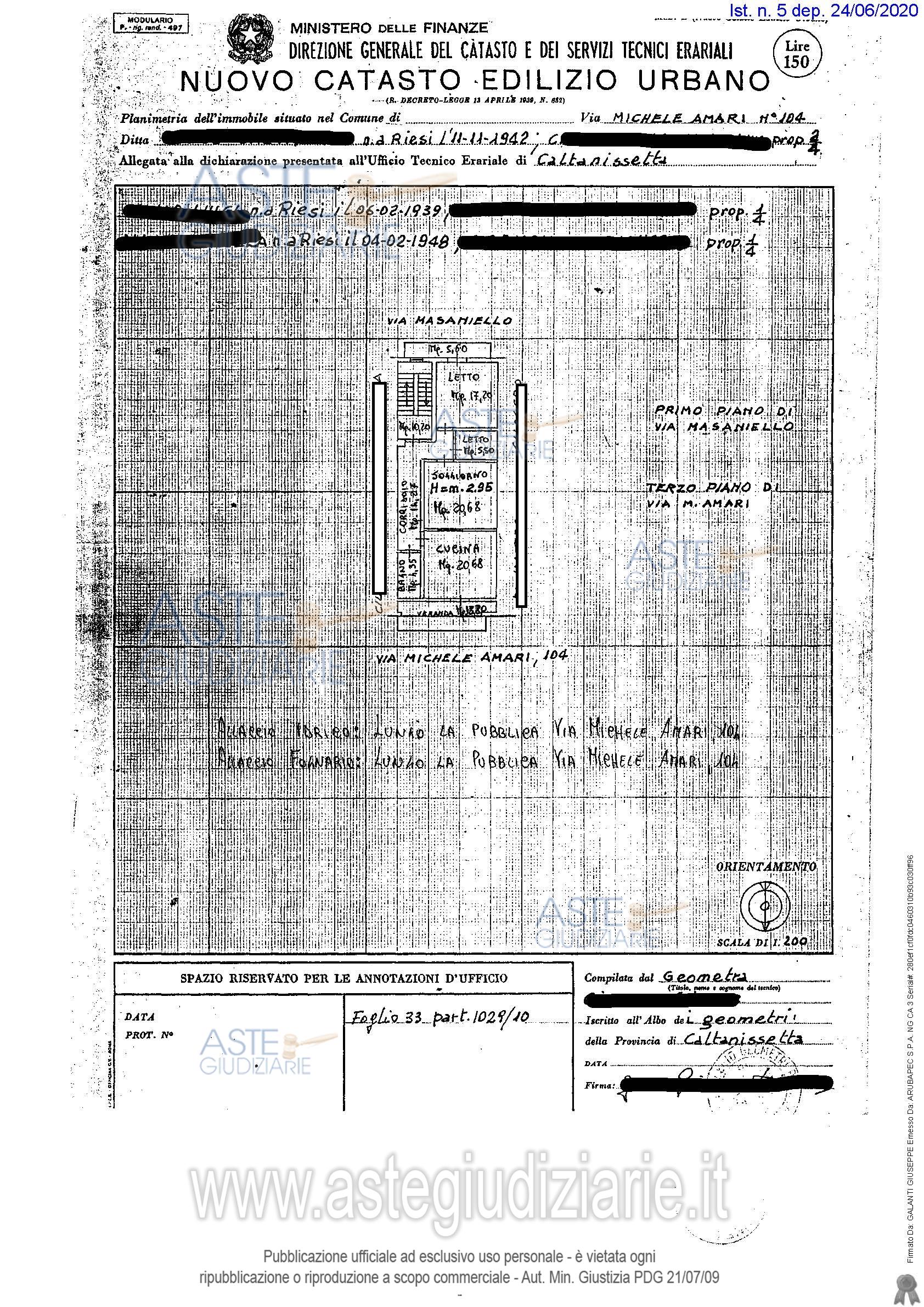 Vendita in attesa dell'emissione del nuovo bando d'asta. LOTTO 4: LOTTO QUATTRO: Piena proprietà dell’unità immobiliare per civile abitazione al piano terzo. Ultimo prezzo base € 8.588,25 (offerta minima € 6.441,19). Giudice Dott. Ester Rita Difrancesco. Professionista delegato alla vendita Dott. Fabrizio Scalabrino. Custode Giudiziario Dott. Fabrizio Scalabrino - Email "fabrizio.scalabrino@gmail.com". Rif. Tribunale di Caltanissetta - Esecuzione immobiliare post legge 80 n. 42/2019