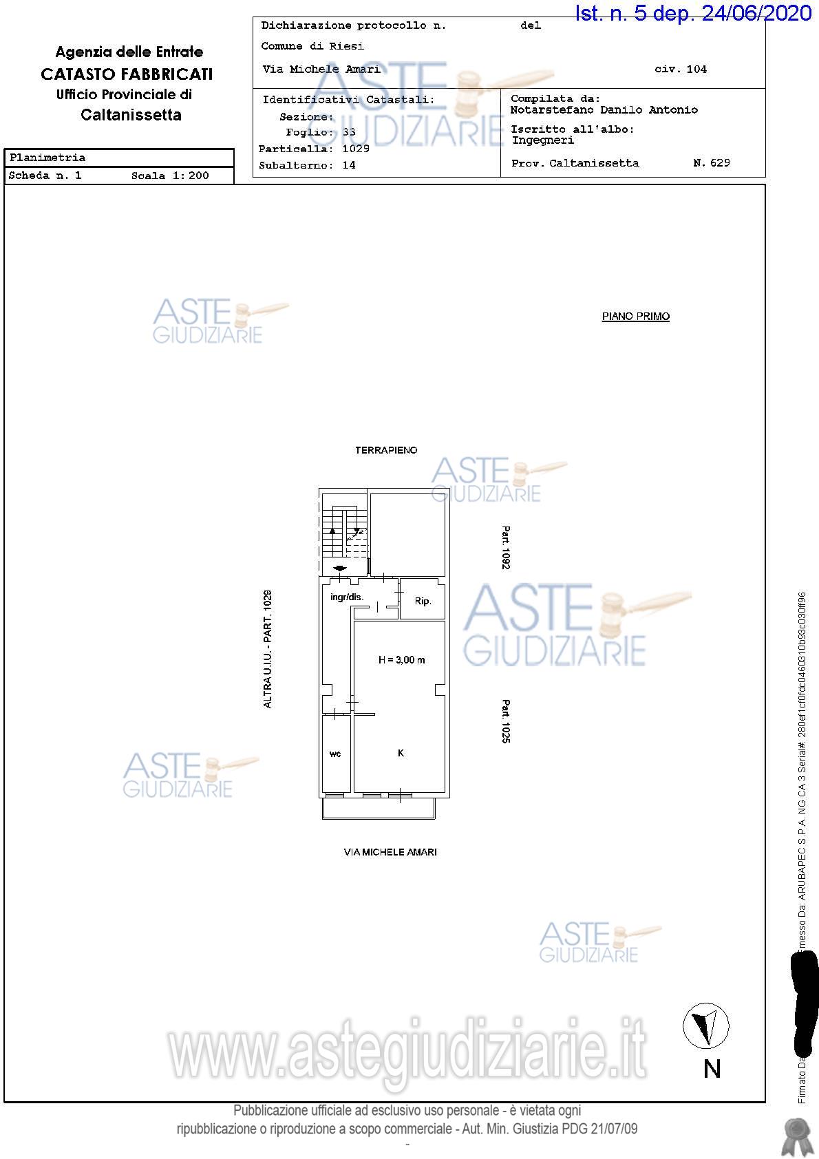 Vendita in attesa dell'emissione del nuovo bando d'asta. LOTTO 2: LOTTO DUE: Piena proprietà dell’unità immobiliare per civile abitazione al piano primo. Ultimo prezzo base € 9.316,85 (offerta minima € 6.987,64). Giudice Dott. Ester Rita Difrancesco. Professionista delegato alla vendita Dott. Fabrizio Scalabrino. Custode Giudiziario Dott. Fabrizio Scalabrino - Email "fabrizio.scalabrino@gmail.com". Rif. Tribunale di Caltanissetta - Esecuzione immobiliare post legge 80 n. 42/2019