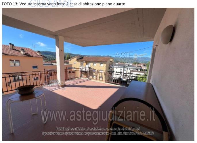 Vendita all'asta Senza incanto, con gara telematica asincrona - LOTTO UNICO: Piena proprietà di un appartamento sito in RIETI ALLA VIA DANTE ALIGHIERI N. 2, di circa 120,00 mq, posto al quarto e ultimo piano, si compone di un ingresso/corridoio, un ampio soggiorno, una cucina, n. 2 camere da letto, uno studio e due bagni. L'appartamento è corredato di due balconi (di 9,60 mq e di 13,10 mq), oltre ad un’ampia terrazza di ca 65,00 mq a cui si accede con doppio affaccio dalla casa ed un garage al piano terra. Prezzo base € 213.438,08 (offerta minima € 160.078,56). Data inizio operazioni di vendita: 02/02/2026 ore 09:40. Professionista delegato alla vendita Avv. Anna Lisa Ciancarelli - Email "avv.ciancarelli@tiscali.it"; Cell. 3403504110; Tel. 3403504110. Custode Giudiziario Avv. Anna Lisa Ciancarelli - Email "avv.ciancarelli@tiscali.it"; Cell. 3403504110; Tel. 3403504110. Rif. Tribunale di Rieti - Esecuzione immobiliare post legge 80 n. 3/2024