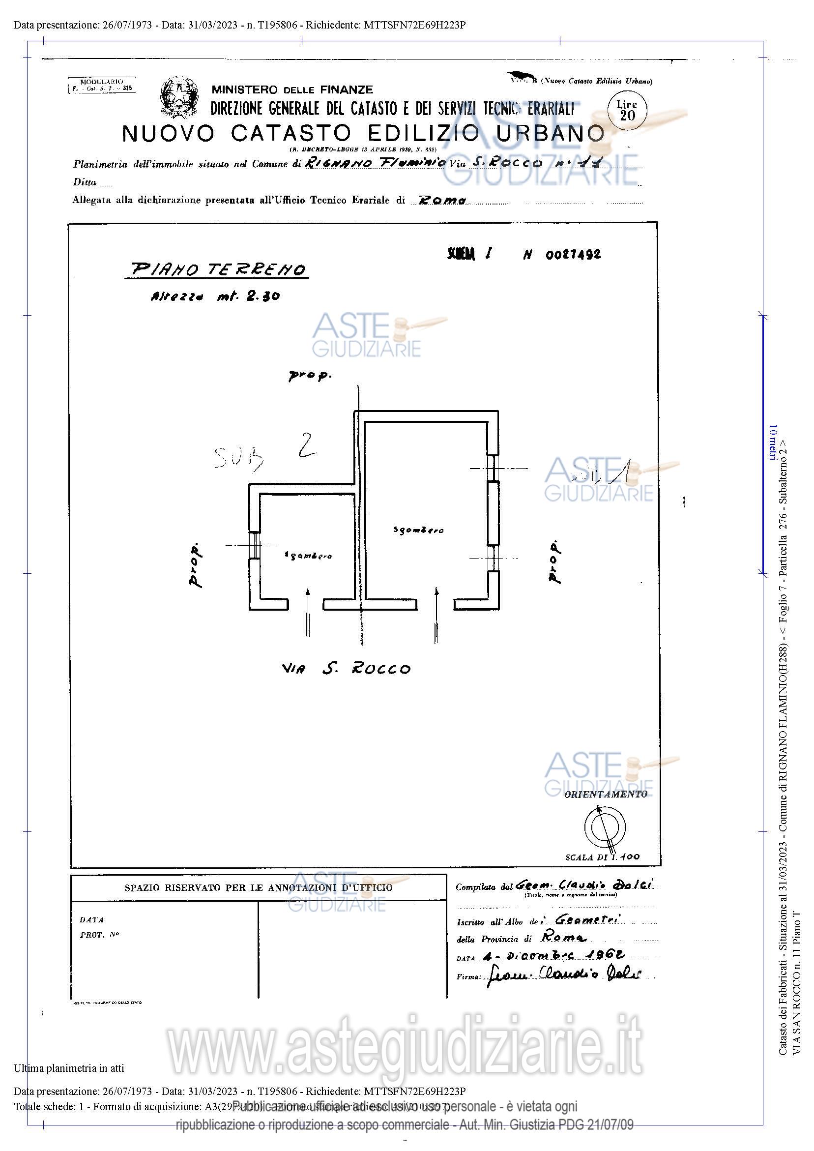 Vendita all'asta Senza incanto, con gara telematica asincrona - LOTTO UNICO: civile abitazione sito nel Comune di Rignano Flaminio (RM), con accesso da Via San Rocco 11 attraverso corte di proprietà di terzi, gravata da servitù di passaggio. L’immobile si compone in un appartamento al piano primo di complessivi mq 108, con ampio salone, due camere da letto, cucina e bagno, con sottostanti locali autorimessa e deposito ubicati al piano terra di complessivi mq 108, più porzione di corte di proprietà esclusiva di mq 340.Immobile occupato dal debitore esecutato. Prezzo base € 42.673,00 (offerta minima € 32.005,00). Data inizio operazioni di vendita: 24/11/2025 ore 10:00. Professionista delegato alla vendita Avv. Naide Di Buccio. Custode Giudiziario Ivg Di Roma Srl - Email "ivgroma@associazioneivg.legalmail.it"; Tel. 0683751500. Rif. Tribunale di Tivoli - Esecuzione immobiliare n. 286/2022