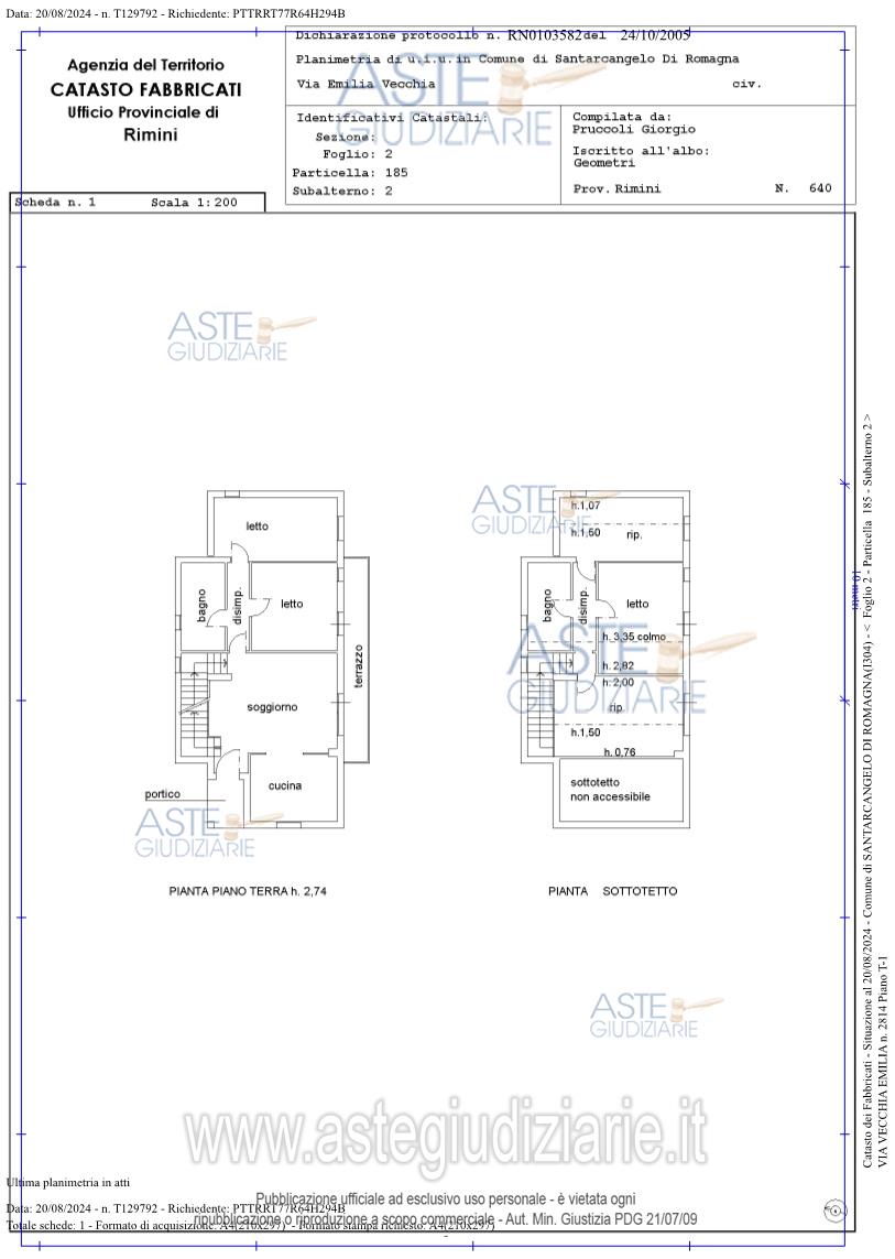 Si evidenzia che il pignoramento grava su tale immobile costituito dalle u.i. di cui al Foglio 2 del Catasto Fabbricati del Comune di Santarcangelo di Romagna, particella 185 sub. 2 e sub. 4, precisamente: