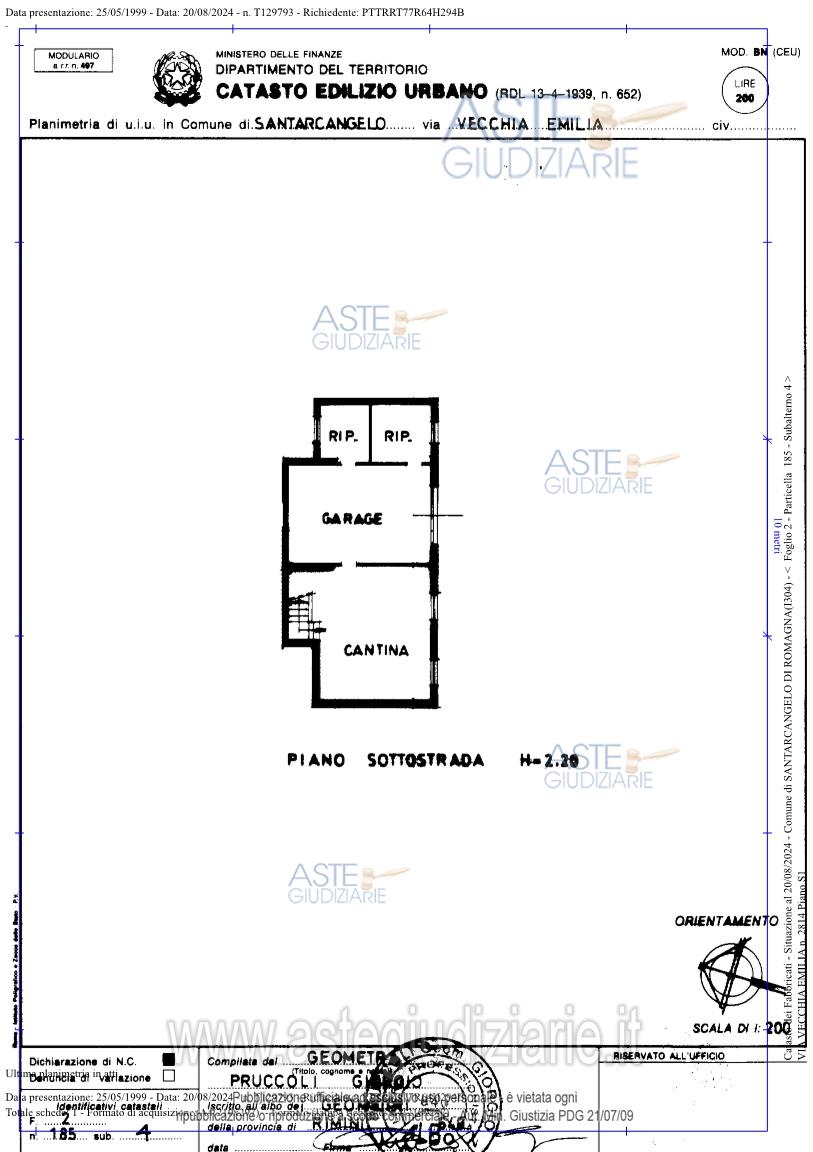 subalterno 4, categoria C/6, classe 1, superficie catastale 115 mq, consistenza 94 mq, posto al piano S1, Rendita: € 199,04.