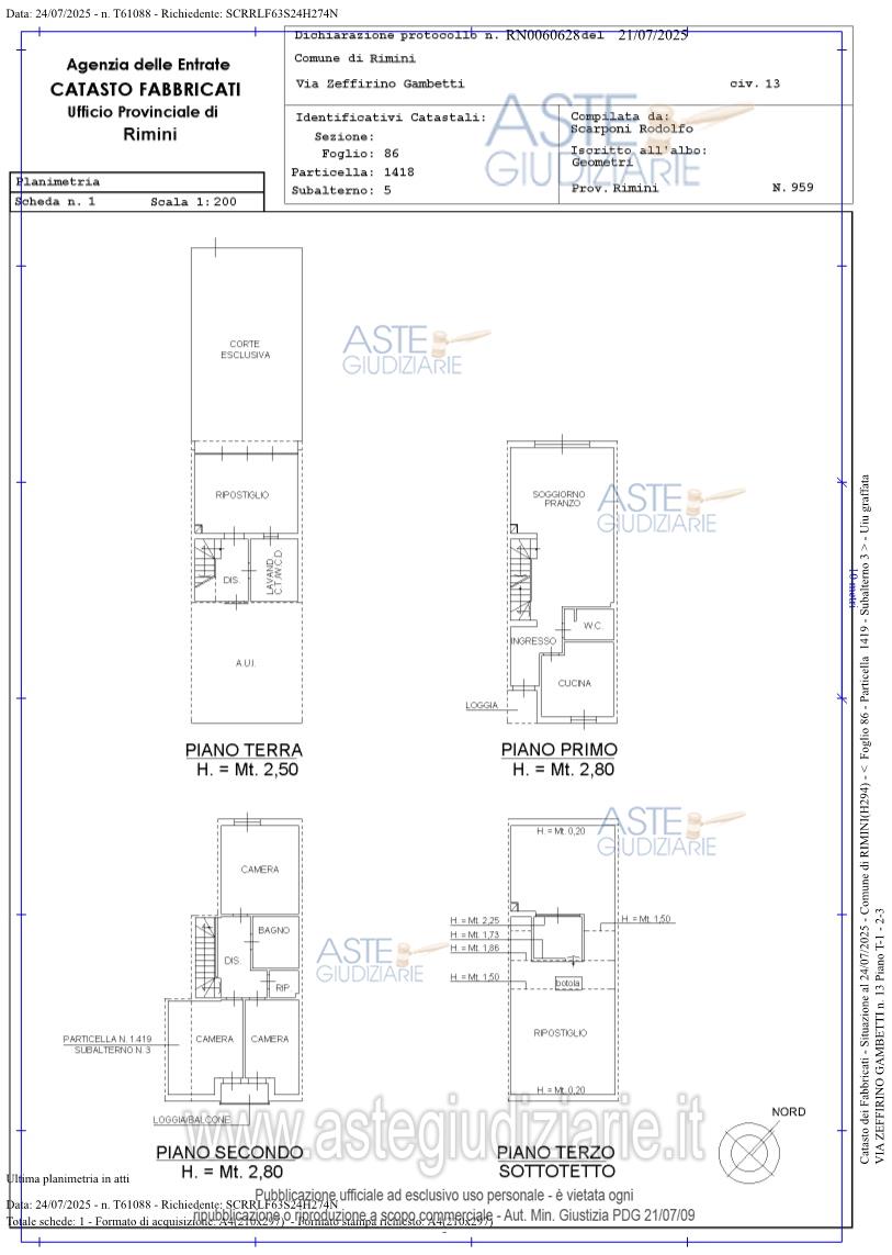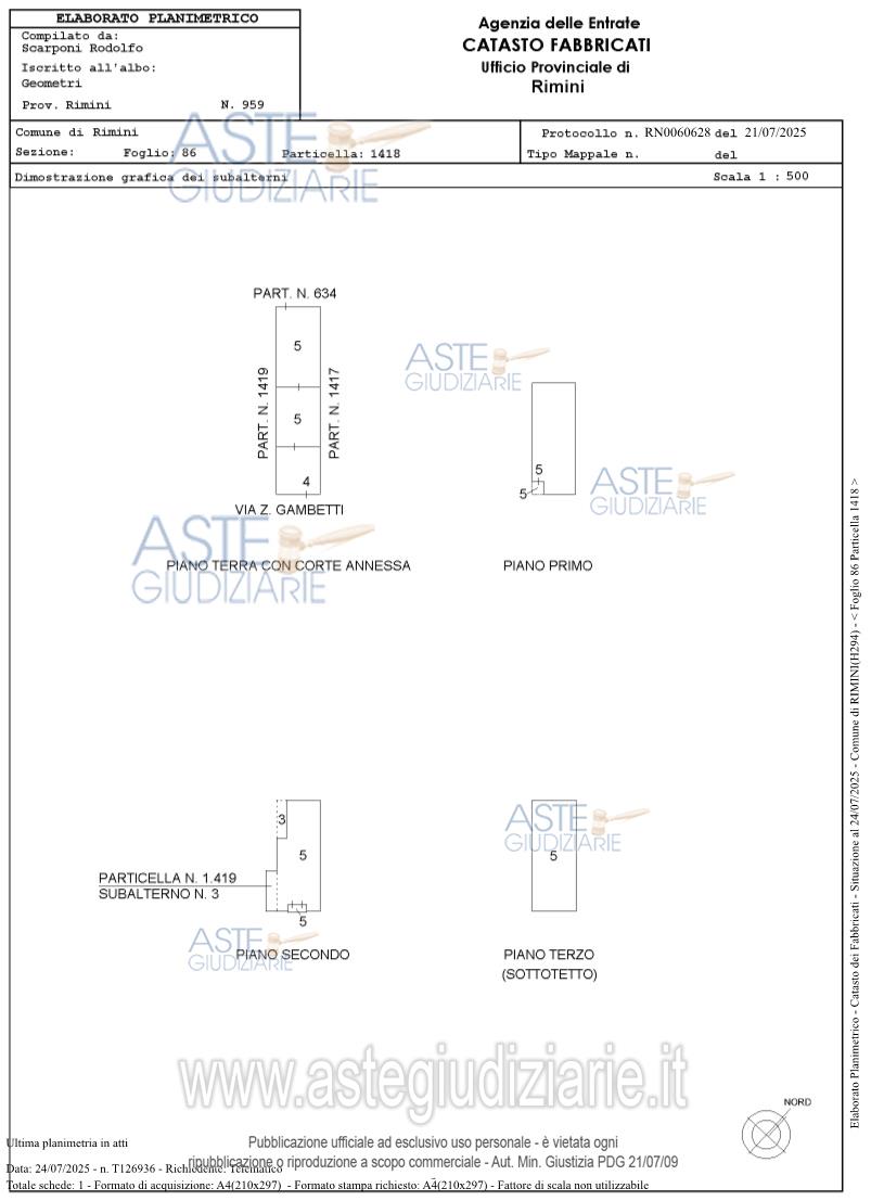 Vendita all'asta Senza incanto, con gara telematica asincrona - LOTTO UNICO: Piena proprietà di appartamento “a schiera” compreso nel V COMPRENSORIO P.E.E.P. AUSA, area III, unità edilizia M 5-6, sito a RIMINI, Via Zeffirino Gambetti 13, composti: piano terra: autorimessa, ripostiglio, disimpegno e lavanderia/C.T./W.C.D. e corte; piano primo: ingresso, soggiorno/pranzo, cucina, W.C. loggia; piano secondo: disimpegno, bagno, ripostiglio e tre camere da letto e loggia/balcone; piano terzo/sottotetto accessibile con scala retrattile: ripostiglio in due vani allo stato grezzo. Prezzo base € 292.500,00 (offerta minima € 219.375,00). Data inizio operazioni di vendita: 02/12/2025 ore 13:00. Giudice Maria Egle Polchi. Professionista delegato alla vendita Not. Giorgia Dondi - Email "gdondi.2@notariato.it"; Tel. 054129305. Custode Giudiziario Not. Giorgia Dondi - Email "gdondi.2@notariato.it"; Tel. 054129305. Rif. Tribunale di Rimini - Espropriazione immobiliare (cartabia) n. 48/2024