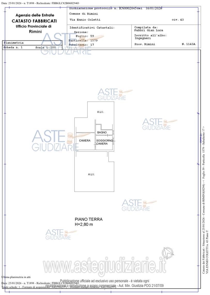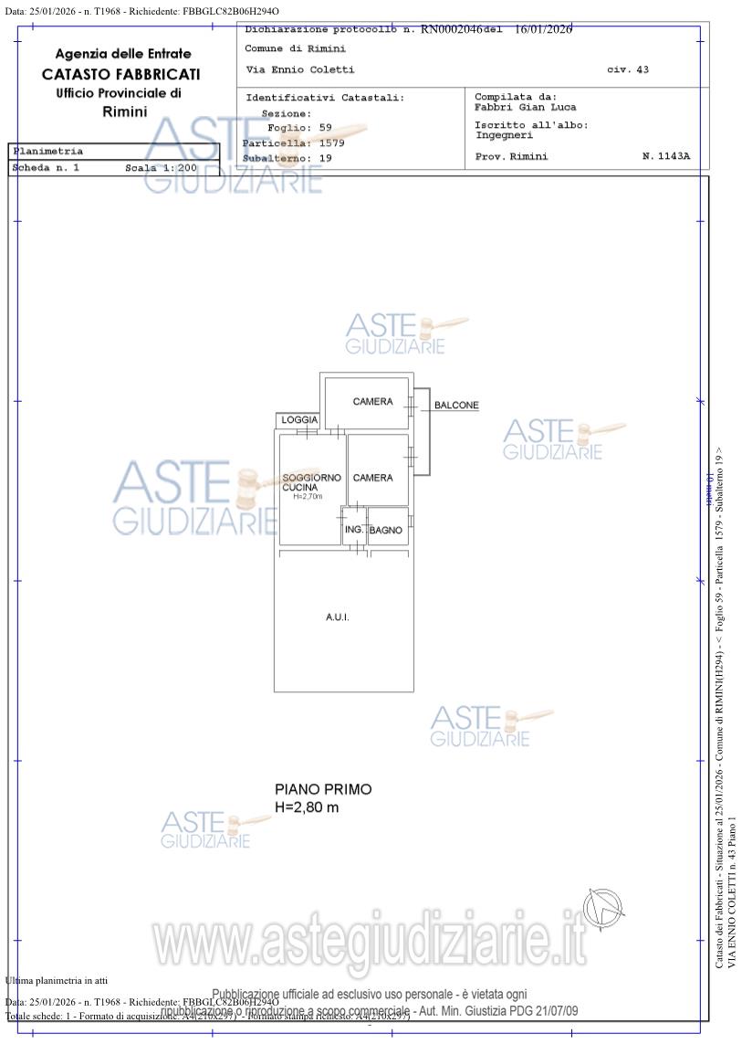 Vendita all'asta Senza incanto, con gara telematica asincrona - LOTTO 5: porzione di fabbricato urbano condominiale. Prezzo base € 165.600,00 (offerta minima € 124.200,00). Data inizio operazioni di vendita: 26/05/2026 ore 17:00. Giudice Giorgia Bertozzi Bonetti. Professionista delegato alla vendita Dott. Vittorio Betti. Custode Giudiziario Dott. Vittorio Betti - Email "vittorio@bettistudio.it". Rif. Tribunale di Rimini - Espropriazione immobiliare (cartabia) n. 52/2025