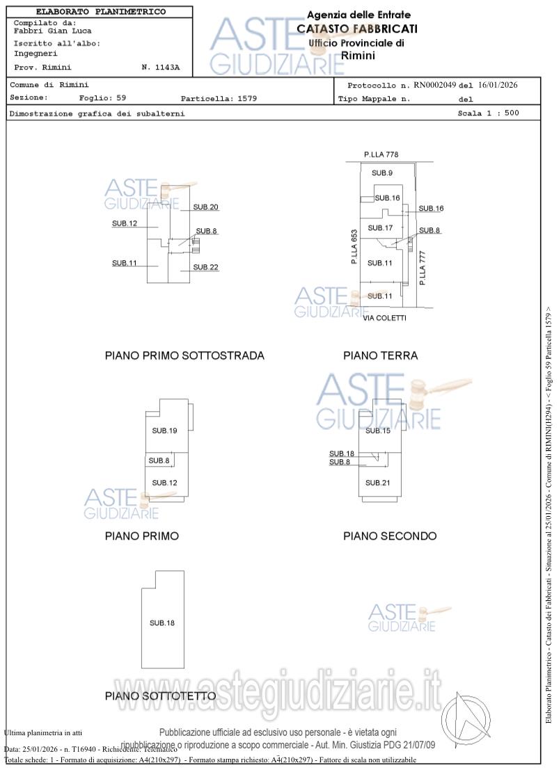 Vendita all'asta Senza incanto, con gara telematica asincrona - LOTTO 3: porzione di fabbricato urbano condominiale. Prezzo base € 196.700,00 (offerta minima € 147.525,00). Data inizio operazioni di vendita: 26/05/2026 ore 17:00. Giudice Giorgia Bertozzi Bonetti. Professionista delegato alla vendita Dott. Vittorio Betti. Custode Giudiziario Dott. Vittorio Betti - Email "vittorio@bettistudio.it". Rif. Tribunale di Rimini - Espropriazione immobiliare (cartabia) n. 52/2025