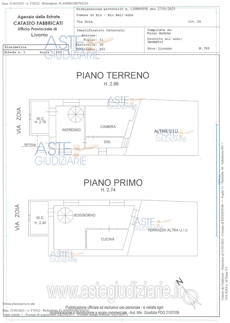 Vendita all'asta Senza incanto, con gara telematica asincrona - LOTTO 2: Appartamento per civile abitazione composto al piano terreno da ingresso, disimpegno, camera e servizio igienico, ed al piano primo, a cui si accede mediante scala interna a chiocciola, da soggiorno, cucina e servizio igienico. Prezzo base € 46.000,00 (offerta minima € 34.500,00). Data inizio operazioni di vendita: 28/04/2026 ore 10:00. Professionista delegato alla vendita Avv. Maurizio Paponi. Custode Giudiziario Istituto Vendite Giudiziarie Di Pisa - Email "prenotazionilivorno@astagiudiziaria.com". Rif. Tribunale di Livorno - Esecuzione immobiliare post legge 80 n. 279/2017