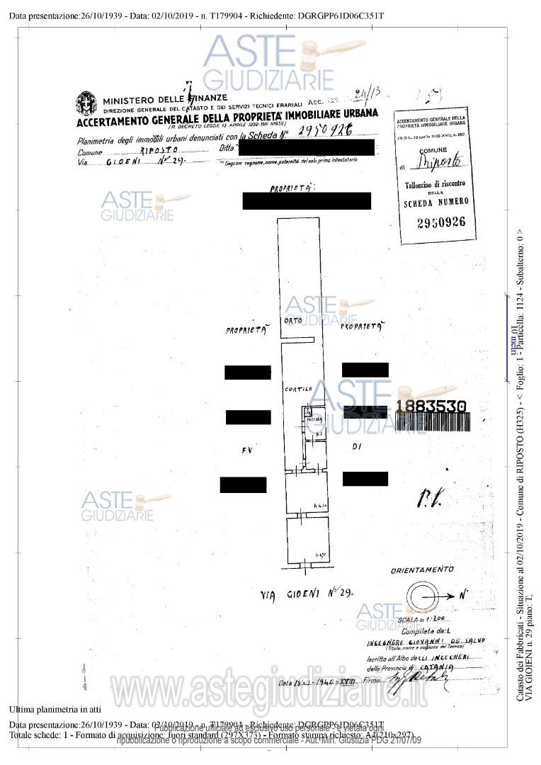 Vendita all'asta Senza incanto, con gara telematica sincrona mista - LOTTO UNICO: Unità immobiliare residenziale sita in Riposto (CT), Via Gioeni n. 29, posta al piano terra, di un fabbricato indipendente composto dal solo piano terra e una corte retrostante in parte pavimentata e in parte terreno. E’ composta da due vani ed accessori, con superficie catastale totale mq 90, superficie catastale escluse le aree scoperte mq. 81. Prezzo base € 40.150,00 (offerta minima € 30.100,00). Data vendita 30/01/2026 ore 10:30. Giudice Dott. Cristiana Delfa. Professionista delegato alla vendita Avv. Maria Corsaro - Email "avvocatomariacorsaro@gmail.com"; Cell. 3206208121. Custode Giudiziario Avv. Maria Corsaro - Email "avvocatomariacorsaro@gmail.com"; Cell. 3206208121. Rif. Tribunale di Catania - Esecuzione immobiliare post legge 80 n. 1038/2017