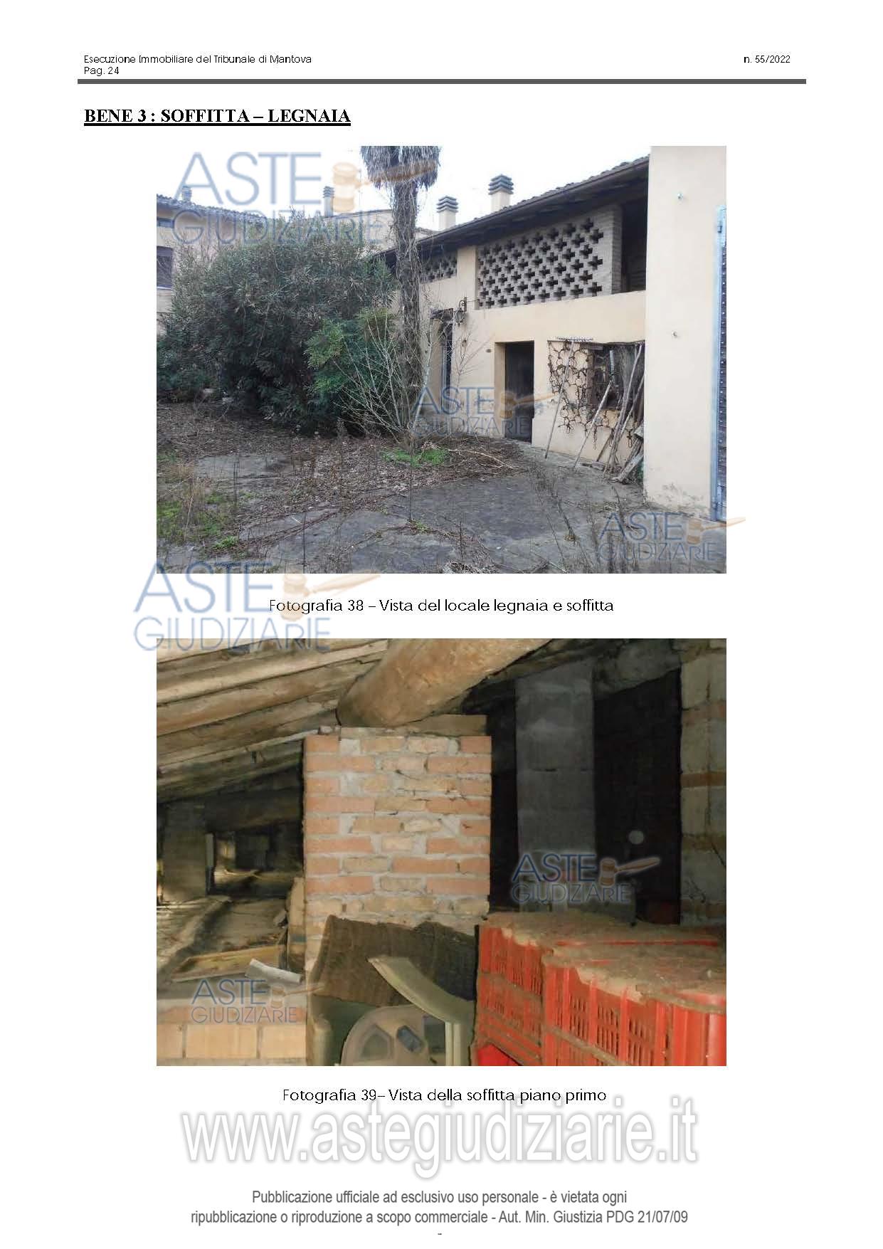 Vendita all'asta Senza incanto, con gara telematica sincrona mista - LOTTO 1: Proprietà di abitazione disposta su due piani più piano sottotetto, compresa in un edificio di due piani fuori terra, con cantina al piano terra, locale legnaia al piano terra e soffitta al piano p. Prezzo base € 35.700,00 (offerta minima € 26.775,00). Data vendita 20/04/2026 ore 14:30. Giudice Mauro Pietro Bernardi. Professionista delegato alla vendita Not. Andrea Felicetti - Email "afelicetti@notariato.it". Custode Giudiziario Sovemo Srl Istituto Vendite Giudiziarie Di Mantova - Email "immobiliaremantova@sovemo.com"; Tel. 0376220694. Rif. Tribunale di Mantova - Esecuzione immobiliare post legge 80 n. 55/2022