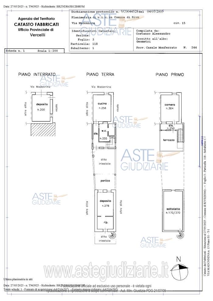 Vendita all'asta Senza incanto, con gara telematica asincrona - LOTTO UNICO: fabbricato indipendente posto all’estremità di una manica di altre abitazioni; al piano seminterrato vi è un deposito (utilizzabile anche come autorimessa), al piano terra l’ingresso dell’abitazione, la scala di salita al piano superiore, un ripostiglio, un bagno e la cucina; al piano superiore un disimpegno, una camera ed un terrazzo; al piano terra, separato dall’abitazione tramite un piccolo giardino, altro locale deposito con porticato ed esternamente scala a chiocciola di salita al sottotetto. Prezzo base € 15.000,00 (offerta minima € 11.250,00). Data inizio operazioni di vendita: 24/06/2026 ore 11:00. Giudice Edoardo Gaspari. Professionista delegato alla vendita Avv. Edoardo Dattrino - Email "dattrino@cedarsassociati.it". Custode Giudiziario Avv. Edoardo Dattrino - Email "dattrino@cedarsassociati.it". Rif. Tribunale di Vercelli - Espropriazione immobiliare (cartabia) n. 28/2025