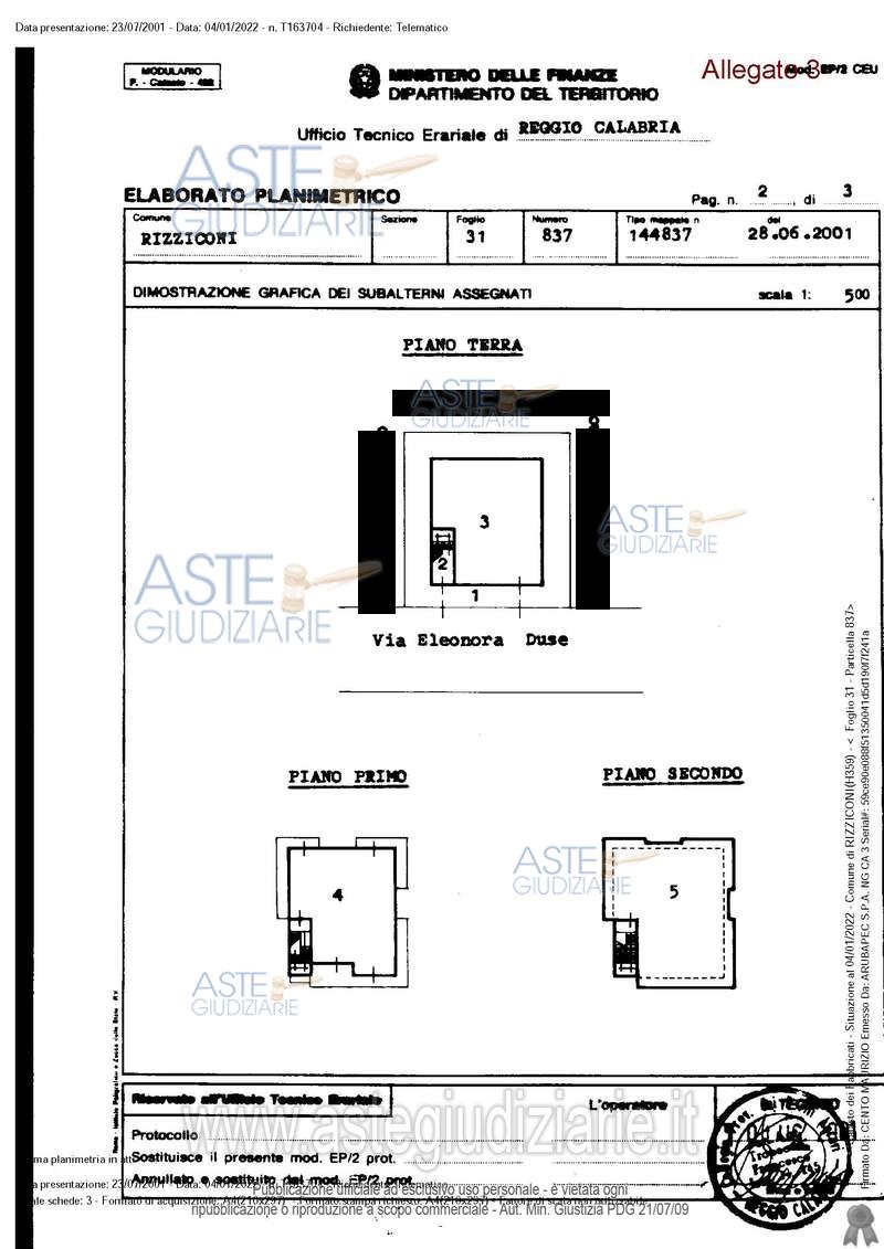 Vendita all'asta Senza incanto, con gara telematica asincrona - LOTTO UNICO: Piena proprietà di fabbricato a due piani f.t. composto da: garage, attualmente utilizzato come deposito, al PT (cat. C/6, classe 1, di 170 mq, sup. tot. 223 mq); appartamento al P1 costituito da ingresso, salone, cucina-pranzo con angolo cottura, 4 camere da letto, 2 bagni oltre veranda e balconi (cat. A/2, classe 2, di 7,5 vani, sup. tot. 219 mq); lastrico solare impermeabilizzato con guaina bituminosa (cat. F/5, di 242 mq). Prezzo base € 16.717,69 (offerta minima € 12.538,27). Data inizio operazioni di vendita: 24/04/2026 ore 10:00. Giudice Dott. Marta Caineri. Professionista delegato alla vendita Avv. Lidia Polifrone - Email "lidiapolifrone@gmail.com"; Tel. 3287230280. Custode Giudiziario Avv. Lidia Polifrone - Email "lidiapolifrone@gmail.com"; Tel. 3287230280. Rif. Tribunale di Palmi - Esecuzione immobiliare post legge 80 n. 27/2018
