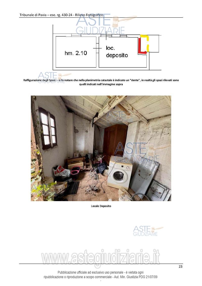Vendita all'asta Senza incanto, con gara telematica asincrona - LOTTO UNICO: Abitazione di tipo economico con accesso indipendente posta su due piani fuori terra costituita da ingresso, due vani e cucina, al primo piano da due vani e servizio con scala interna. Magazzino in corpo staccato dal fabbricato principale ad uso ripostiglio, cantina, costituto da due vani. Prezzo base € 37.000,00 (offerta minima € 27.750,00). Data inizio operazioni di vendita: 24/03/2026 ore 14:30. Giudice Francesca Paola Claris Appiani. Professionista delegato alla vendita Avv. Maddalena Bosio - Email "avv.maddalenabosio@libero.it"; Tel. 0383367127. Custode Giudiziario Istituto Vendite Giudiziarie Di Vigevano - Email "ivgvigevano@ivgpiemonte.it"; Tel. 0381691137. Rif. Tribunale di Pavia - Espropriazione immobiliare (cartabia) n. 430/2024