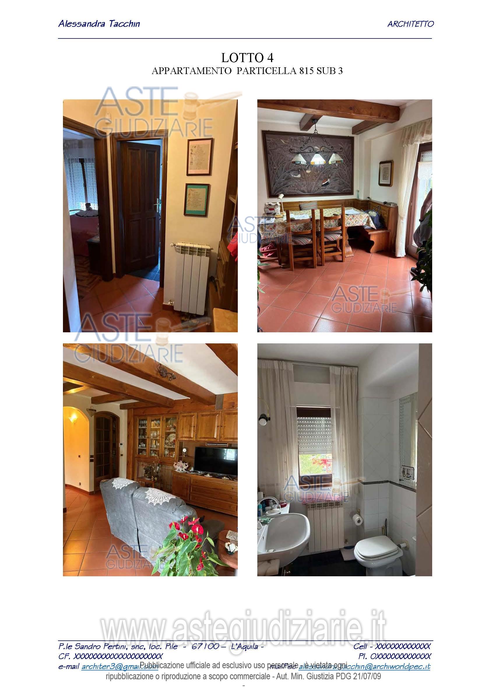 Vendita all'asta Senza incanto, con gara telematica asincrona - LOTTO 4: LOTTO 4Bene 4) Appartamento ubicato a Rocca di Mezzo (AQ)- SS bis, 9, piano S1-1-2 Fg. 26 part.lla 815Sub 3 Categoria A2, censito al NCEU del Comune di Rocca di Mezzo. Bene 5) Garage ubicato a Rocca di Mezzo (AQ)- SS5 bis, 9, piano S1 Fg 26 part.lla 815 Sub 2,Categoria C6. Trattasi di autorimessa censita al NCEU del Comune di Rocca di Mezzo. Destinazione urbanistica: Zona “E” - RURALE-. Prezzo base € 137.732,00 (offerta minima € 103.299,00). Data inizio operazioni di vendita: 25/06/2026 ore 16:30. Giudice: Maura Manzi.