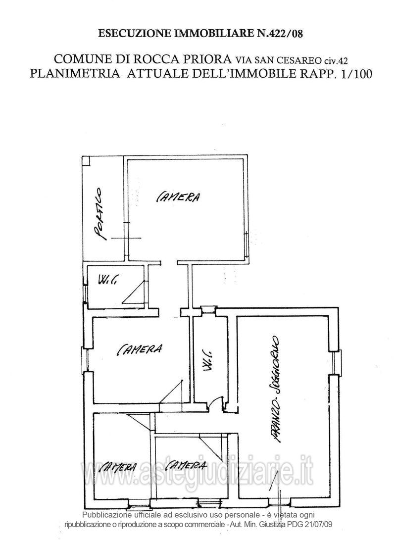 Vendita all'asta Senza incanto, con gara telematica asincrona - LOTTO UNICO: Appartamento ubicato a Rocca Priora, località “Colle di Fuori”, con accesso dalla Via San Cesareo n. 42 posto al piano Terra, composto da salone con angolo cottura, ingresso, quattro camere, piccolo portico, due bagni e con annessa corte di pertinenza di 320 mq. Con sovrastante posto auto scoperto, il tutto confinante con proprietà Giovannetti Alessandra e/o aventi causa, proprietà Raponi e/o aventi causa, distacco verso Via San Cesareo, salvo altri. Superficie convenzionale 159 mq. Prezzo base € 110.250,00 (offerta minima € 82.687,00). Data inizio operazioni di vendita: 05/05/2026 ore 12:00. Professionista delegato alla vendita Avv. Salvatore Di Marco - Email "studiolegale.dimarco@libero.it"; Cell. 3332996836. Custode Giudiziario Avv. Ivg - Email "info@ivgroma.it". Rif. Tribunale di Velletri - Esecuzione immobiliare post legge 80 n. 422/2008