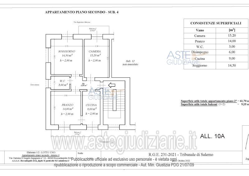 Vendita all'asta Senza incanto, con gara telematica asincrona - LOTTO 1: Intera piena proprietà di appartamento per civile abitazione. Prezzo base € 35.430,00 (offerta minima € 26.572,50). Data inizio operazioni di vendita: 19/11/2025 ore 14:00. Professionista delegato alla vendita Dott. Rosario Camaggio. Custode Giudiziario Dott. Rosario Camaggio - Email "r.camaggio@commercialistisalerno.it"; Cell. 3488122838; Tel. 0892583359. Rif. Tribunale di Salerno - Esecuzione immobiliare post legge 80 n. 231/2021