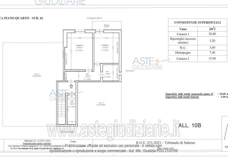 Vendita all'asta Senza incanto, con gara telematica asincrona - LOTTO 2: Intera piena proprietà di mansarda. Prezzo base € 11.810,00 (offerta minima € 8.857,50). Data inizio operazioni di vendita: 19/11/2025 ore 14:00. Professionista delegato alla vendita Dott. Rosario Camaggio. Custode Giudiziario Dott. Rosario Camaggio - Email "r.camaggio@commercialistisalerno.it"; Cell. 3488122838; Tel. 0892583359. Rif. Tribunale di Salerno - Esecuzione immobiliare post legge 80 n. 231/2021