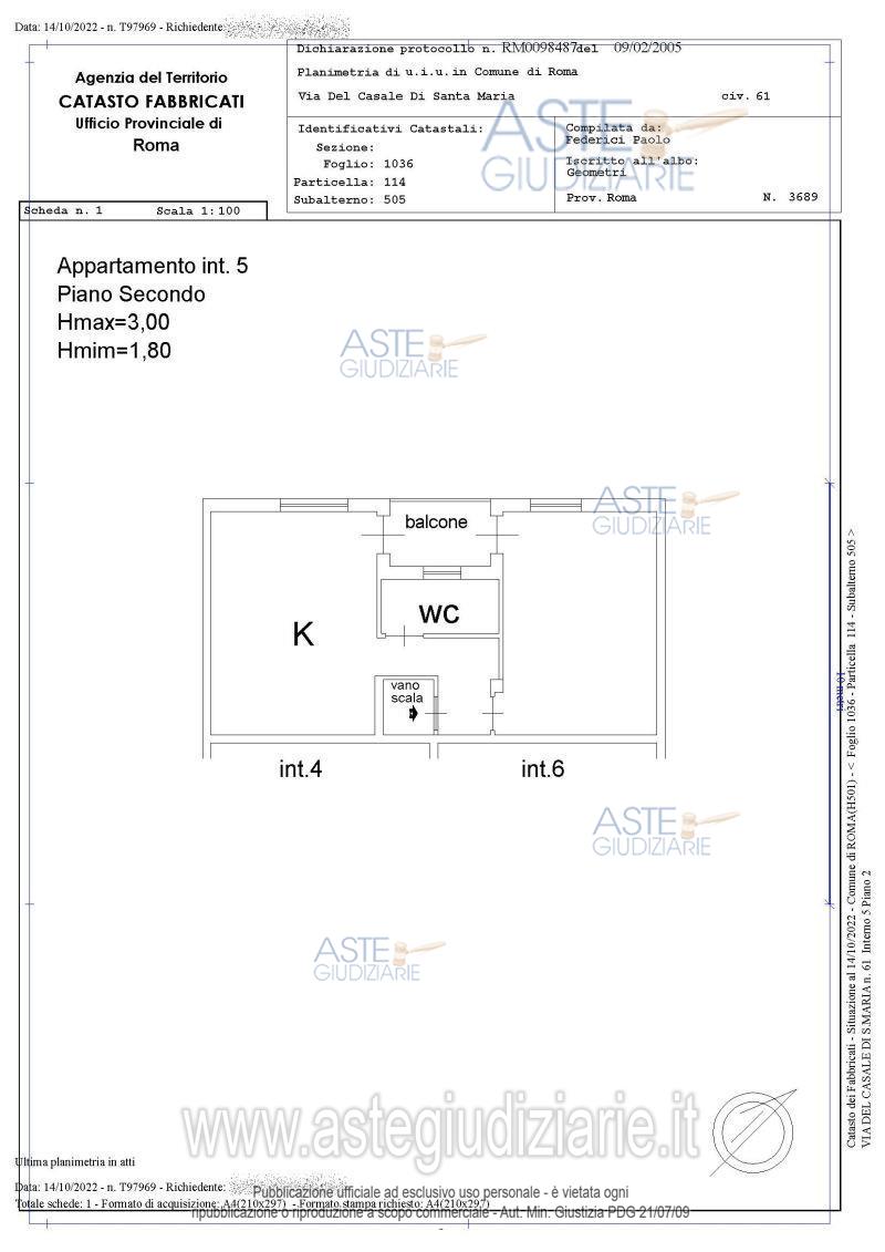 Vendita all'asta Senza incanto, con gara telematica asincrona - LOTTO 2: Quota pari a 1/1 del diritto di piena proprietà su appartamento sito in Roma – Via del Casale di Santa Maria 61, int. 5, piano 1-2 catastalmente composto da ingresso/cucina, camera, bagno e balcone, difformemente da quanto rilevato in loco, come di seguito si precisa, il tutto con superficie convenzionale complessiva pari a mq. 54,00. Prezzo base € 36.761,60 (offerta minima € 27.571,20). Data inizio operazioni di vendita: 18/11/2025 ore 11:00. Giudice Ferramosca. Professionista delegato alla vendita Avv. Angela Sapio. Custode Giudiziario Ivg Di Roma Srl - Email "pvp@visiteivgroma.it"; Tel. 0689569801. Rif. Tribunale di Roma - Esecuzione immobiliare post legge 80 n. 744/2008