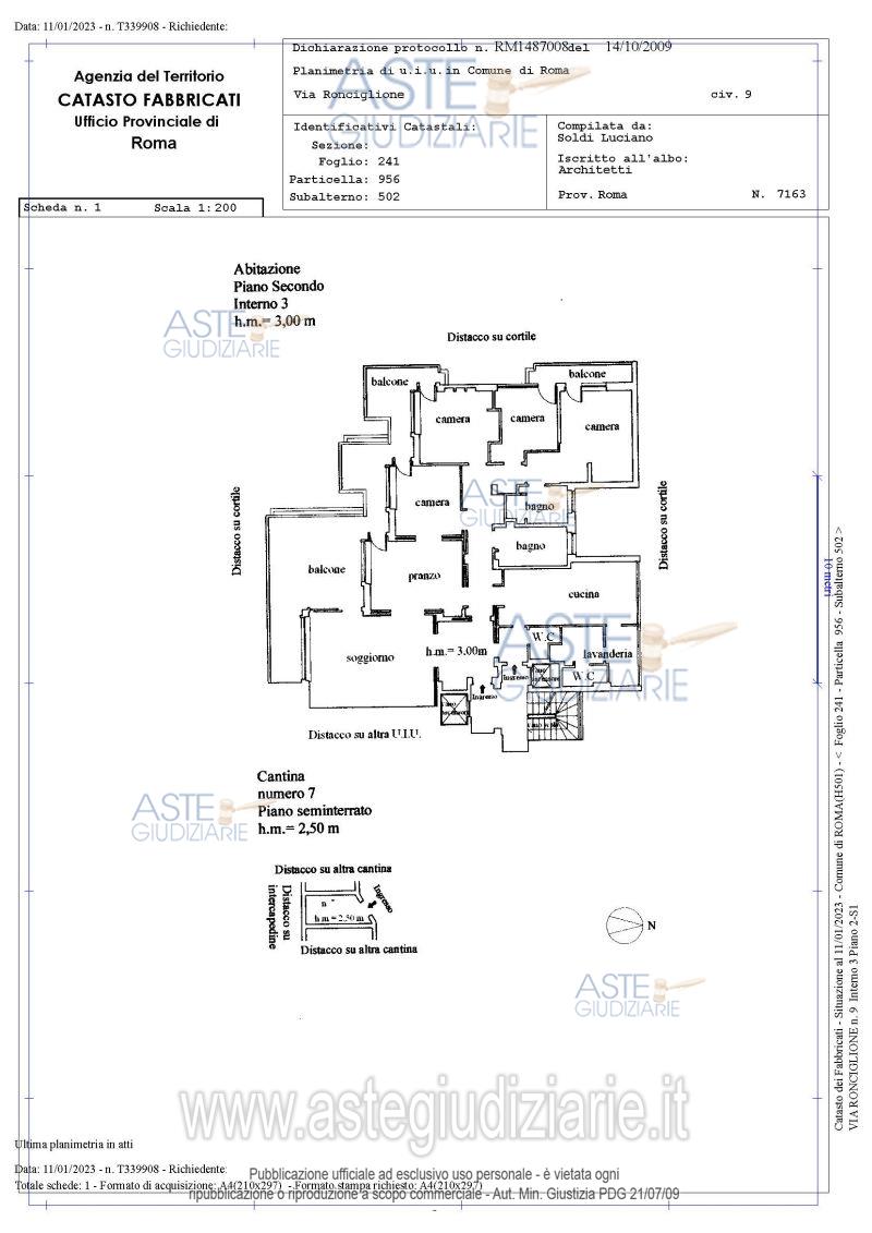 Vendita all'asta Senza incanto, con gara telematica asincrona - LOTTO UNICO: appartamento in Roma, Via Ronciglione 9, int. 3, 2 piano, con cantina n. 7 al piano seminterrato. Il tutto per una superficie totale convenzionale di mq. 199,82 circa. Con Garage int. I al piano seminterrato per una superficie totale convenzionale di mq. 45,00 circa . Prezzo base € 795.000,00 (offerta minima € 596.250,00). Data inizio operazioni di vendita: 06/05/2026 ore 11:00. Giudice Dott. Federica D'ambrosio. Professionista delegato alla vendita Avv. Roberto Tartaglia. Custode Giudiziario Ivg Di Roma Srl - Email "pvp@visiteivgroma.it"; Tel. 0689569801. Rif. Tribunale di Roma - Esecuzione immobiliare post legge 80 n. 1411/2021