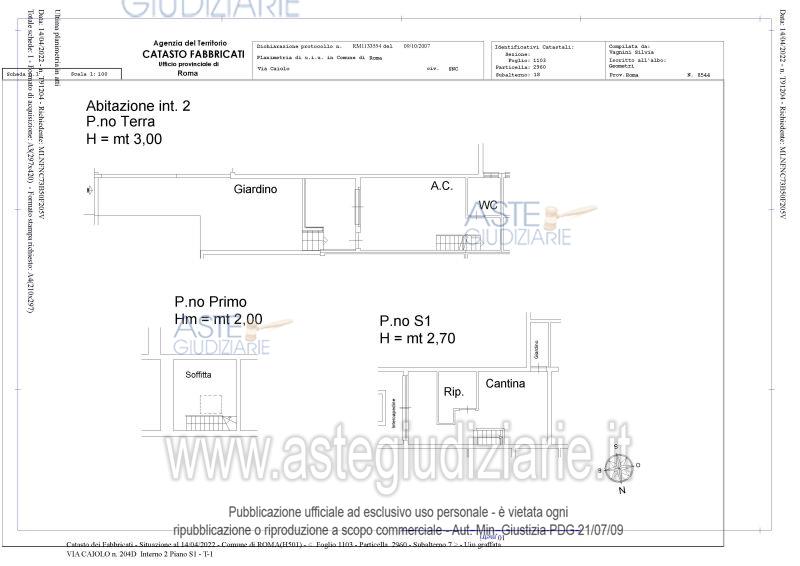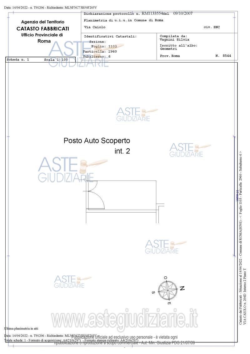 Vendita all'asta Senza incanto, con gara telematica asincrona - LOTTO UNICO: 1/1 del diritto di proprietà superficiaria su immobile sito in Roma – Via Caiolo n. 204/D, piano S1, T e 1, int. 2, oltre posto auto incluso nella corte esterna, di circa 9 mq. Identificato al Catasto Fabbricati del Comune di Roma al foglio n. 1103, part. 2960, sub 7, graffato a subb. 10 e 18, zc 6, cat A/2, r.c. € 561,65 (l’appartamento) e al foglio n. 1103, part. 2960, sub 6, cat C/6, r.c. € 32,54 (il posto auto). Prezzo base € 127.000,00 (offerta minima € 95.250,00). Data inizio operazioni di vendita: 11/12/2025 ore 15:00. Giudice Dott. Miriam Iappelli. Professionista delegato alla vendita Dott. Paolo Ragosta. Custode Giudiziario Ivg Di Roma Srl - Email "pvp@visiteivgroma.it"; Tel. 0689569801. Rif. Tribunale di Roma - Esecuzione immobiliare post legge 80 n. 224/2021