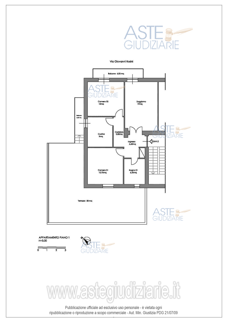 Vendita all'asta Senza incanto, con gara telematica asincrona - LOTTO 1: Piena proprietà su appartamento ubicato a Roma (RM) - via Giovanni Rosini 85, interno 2, piano 1, composto da un ingresso, un soggiorno, una cucina abitabile, un bagno, due camere da letto, un terrazzo e un balcone, per una Superficie Convenzionale di 102 mq. Sono presenti difformità da sanare. Immobile occupato dall'esecutata, si procederà alla liberazione al momento dell'emissione del decreto di trasferimento. Prezzo base € 167.000,00 (offerta minima € 125.250,00). Data inizio operazioni di vendita: 12/11/2025 ore 15:00. Giudice Dott. Miriam Iappelli. Professionista delegato alla vendita Avv. Rosita Vallone. Custode Giudiziario Ivg Di Roma Srl - Email "pvp@visiteivgroma.it"; Tel. 0683751500. Rif. Tribunale di Roma - Espropriazione immobiliare (cartabia) n. 761/2023