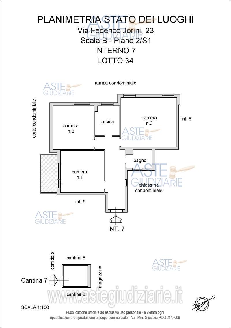 Vendita all'asta Senza incanto, con gara telematica asincrona - LOTTO 34: Piena proprietà per la quota di 1/1 di un appartamento, con cantina di pertinenza, sito nel Comune di Roma, in Via Federico Jorini n.23, scala B, int. 7, piano 2-S1, zona Portuense (municipio XI ex XV). Prezzo base € 170.000,00 (offerta minima € 127.500,00). Data inizio operazioni di vendita: 09/06/2026 ore 14:00. Giudice Dott. Barbara Perna. Professionista delegato alla vendita Avv. Barbara Schepis. Custode Giudiziario I.V.G Di Roma S.R.L. Istituto Vendite Giudiziarie - Email "pubblicita@ivgroma.it"; Tel. 06 83751500. Rif. Tribunale di Roma - Esecuzione immobiliare post legge 80 n. 1039/2021