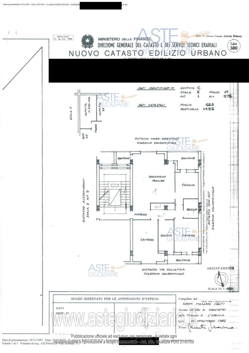 Vendita in attesa dell'emissione del nuovo bando d'asta. LOTTO 1: Appartamento, edificio C, scala E, int. 1, piano 1, composto da: ingresso, soggiorno/pranzo, disimpegno, cucina, wc, camera 1, camera 2, bagno, 2 balconi, 108 mq.Soffitta numero 1 e un posto auto scoperto numero 1. Ultimo prezzo base € 170.000,00 (offerta minima € 127.500,00). Professionista delegato alla vendita Fernando Misiti. Rif. Tribunale di Roma - Contenzioso civile n. 19009/2022