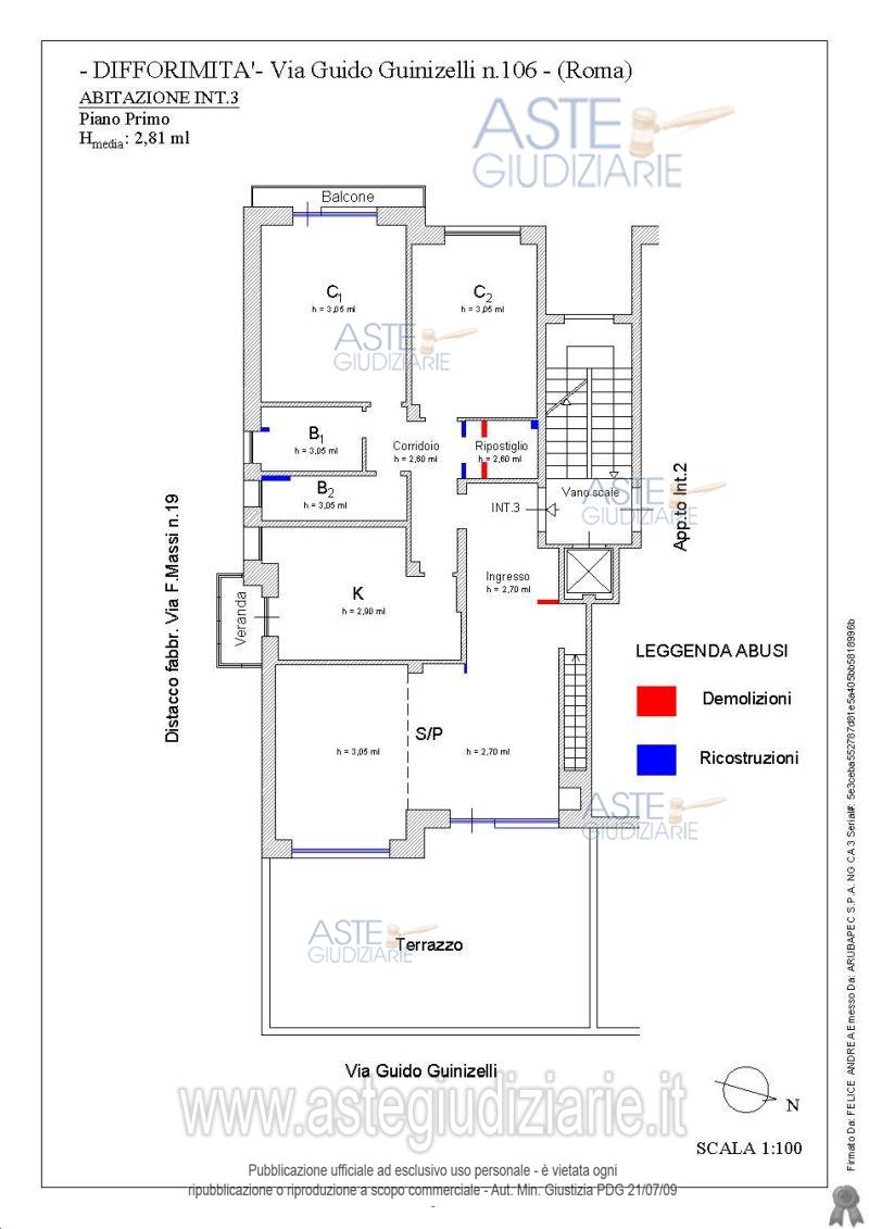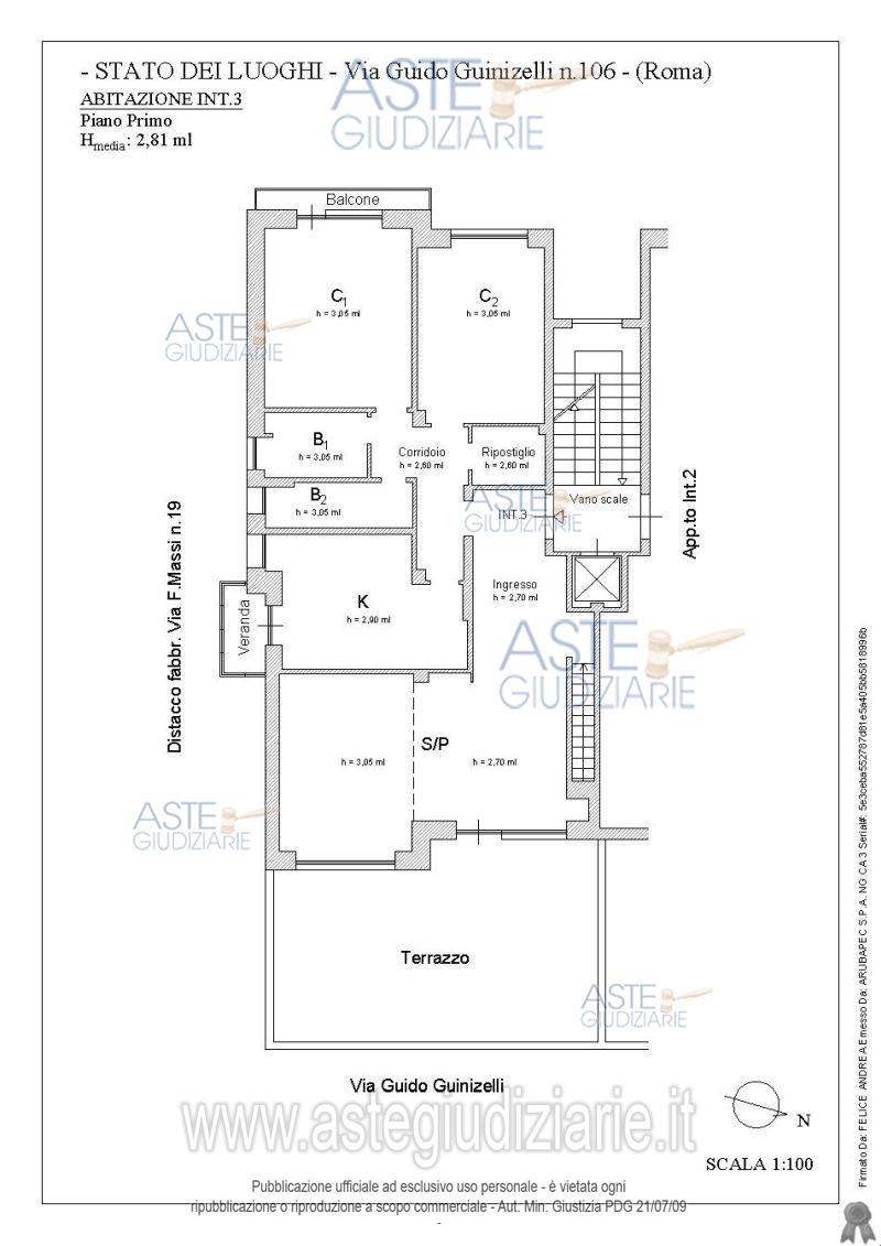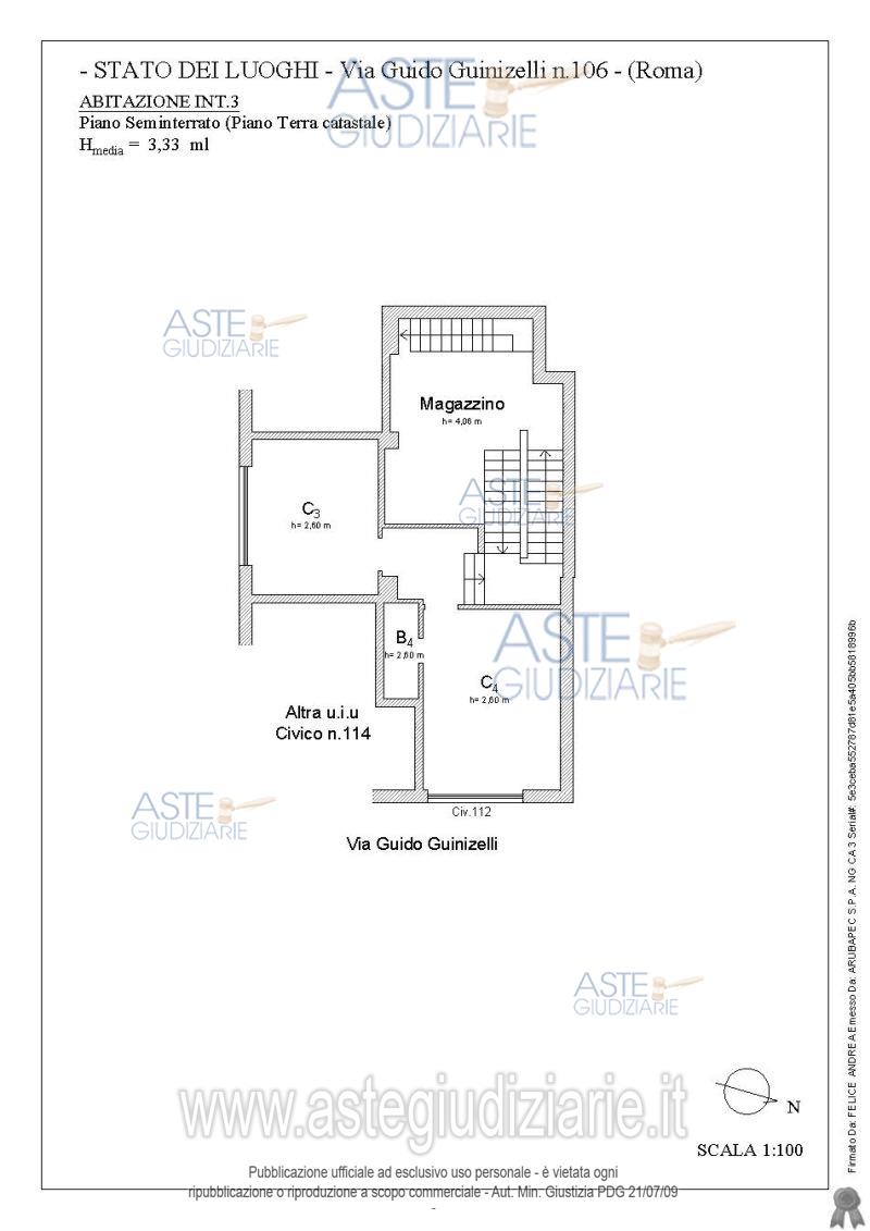 Vendita all'asta Senza incanto, con gara telematica asincrona - LOTTO UNICO: 100/100 del diritto di proprietà su appartamento in Roma Via Guido Guinizelli n. 106, P.1, T, S1, Int. 3. L’acquirente dell’immobile avrà una quota proporzionale millesimale, rispetto all’appartamento, dell’area coperta e scoperta di pertinenza del fabbricato identificata al Catasto Terreni sez. A Comune Roma Fg.460, part. 590 Ente Urbano. Si dovrà procedere con S.C.I.A. in sanatoria (art. 37 D.P.R. 380/01). Formalità pregiudizievoli non cancellabili dal G.E Emesso ordine liberazione immobile il 3.10.25. Prezzo base € 628.000,00 (offerta minima € 471.000,00). Data inizio operazioni di vendita: 08/01/2026 ore 10:00. Giudice Fernando Dott. Scolaro. Professionista delegato alla vendita Dott. Giovanni Dott. Caravetta. Custode Giudiziario Ivg Di Roma Srl - Email "ivgroma@associazioneivg.legalmail.it"; Cell. 0683751500; Tel. 0683751500. Rif. Tribunale di Roma - Esecuzione immobiliare post legge 80 n. 985/2019