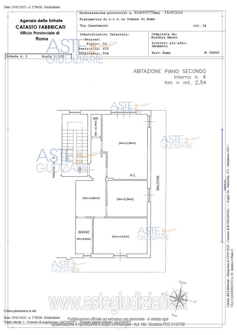 Vendita all'asta Senza incanto, con gara telematica asincrona - LOTTO UNICO: Intera proprietà di immobile sito in Roma, località “Pietro Pertusa”, Via Casatenovo n. 32, piano secondo, int. 4, destinazione di casa popolare, composto da ingresso, disimpegno, soggiorno con angolo cottura, due camere da letto, un bagno, un ripostiglio ed un balcone che delimita l’immobile su due lati. Prezzo base € 112.000,00 (offerta minima € 84.000,00). Data inizio operazioni di vendita: 07/05/2026 ore 12:00. Giudice Federica D'ambrosio. Professionista delegato alla vendita Avv. Luciana Forte. Custode Giudiziario Ivg Di Roma Srl - Email "pvp@visiteivgroma.it"; Tel. 0689569801. Rif. Tribunale di Roma - Espropriazione immobiliare (cartabia) n. 1051/2024