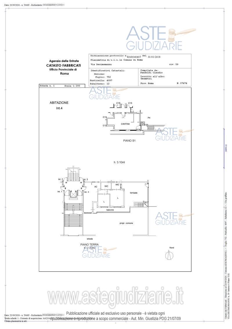 Vendita in attesa dell'emissione del nuovo bando d'asta. LOTTO 4: Proprietà superficiaria sulle unità immobiliari facenti parte del fabbricato sito in Roma Via Decimomannu con accesso dai civici 59 (pedonale) e 61 (carrabile): appartamento piano 1, interno 4 + Box auto. Ultimo prezzo base € 150.000,00 (offerta minima € 112.500,00). Giudice Dott. Miriam Iappelli. Professionista delegato alla vendita Avv. Andrea Belli. Custode Giudiziario I.V.G Di Roma S.R.L. Istituto Vendite Giudiziarie - Email "pubblicita@ivgroma.it"; Tel. 06 83751500. Rif. Tribunale di Roma - Espropriazione immobiliare (cartabia) n. 977/2023
