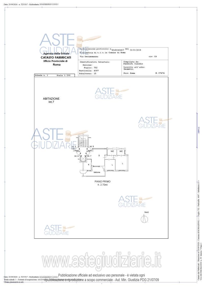 Vendita in attesa dell'emissione del nuovo bando d'asta. LOTTO 7: Proprietà superficiaria sulle unità immobiliari facenti parte del fabbricato sito in Roma Via Decimomannu con accesso dai civici 59 (pedonale) e 61 (carrabile): appartamento piano 1 interno 7 + Box auto + Cantina. Ultimo prezzo base € 100.000,00 (offerta minima € 75.000,00). Giudice Dott. Miriam Iappelli. Professionista delegato alla vendita Avv. Andrea Belli. Custode Giudiziario Ivg Di Roma Srl - Email "pvp@visiteivgroma.it"; Tel. 0689569801. Rif. Tribunale di Roma - Espropriazione immobiliare (cartabia) n. 977/2023