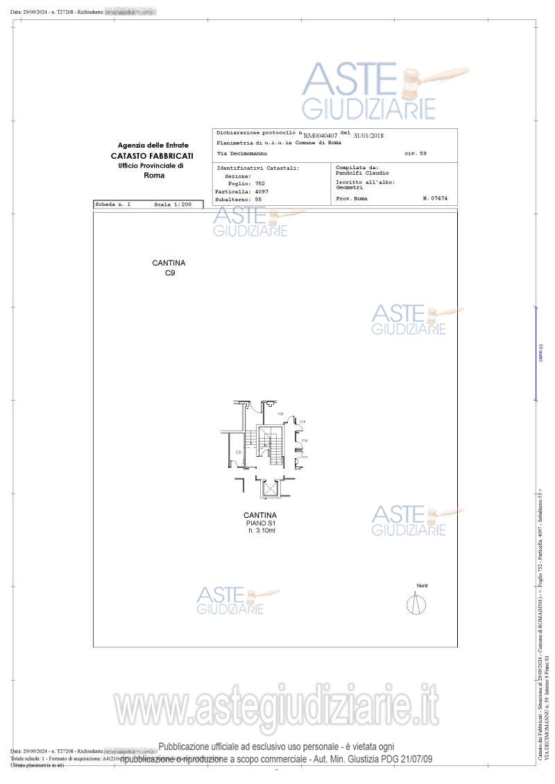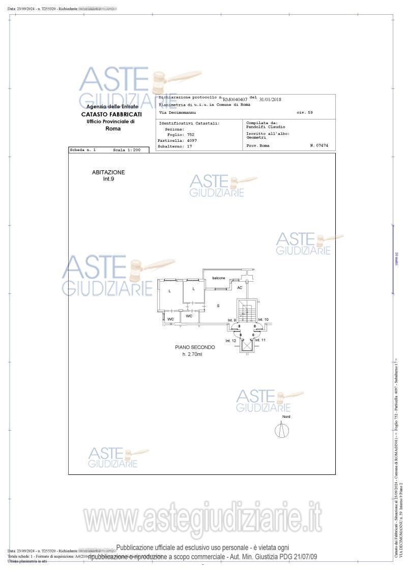 Vendita in attesa dell'emissione del nuovo bando d'asta. LOTTO 9: Proprietà superficiaria sulle unità immobiliari facenti parte del fabbricato sito in Roma Via Decimomannu con accesso dai civici 59 (pedonale) e 61 (carrabile): appartamento piano 2 interno 9 + Box auto + Cantina. Ultimo prezzo base € 100.000,00 (offerta minima € 75.000,00). Giudice Dott. Miriam Iappelli. Professionista delegato alla vendita Avv. Andrea Belli. Custode Giudiziario Ivg Di Roma Srl - Email "pvp@visiteivgroma.it"; Tel. 0689569801. Rif. Tribunale di Roma - Espropriazione immobiliare (cartabia) n. 977/2023
