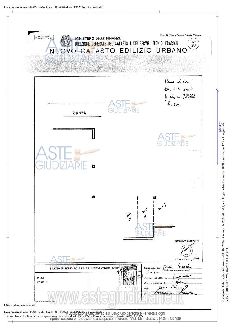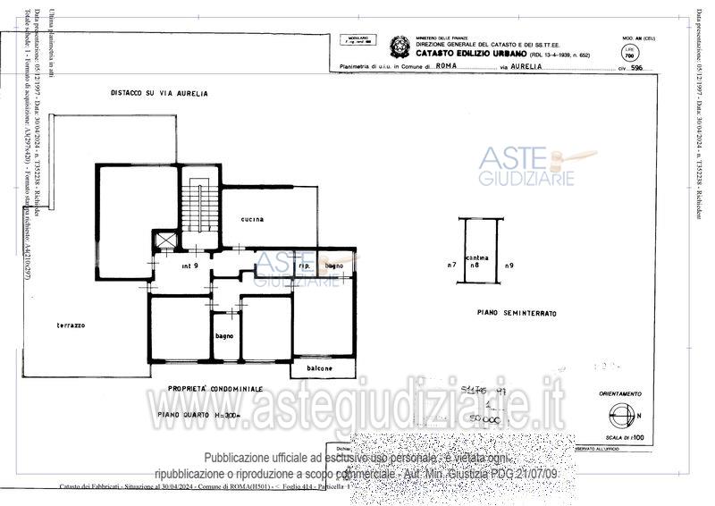 Vendita all'asta Senza incanto, con gara telematica asincrona - LOTTO 1: Quota pari a 1/1 del diritto di piena proprietà su appartamento, cantina e posto auto siti in Roma, Via Aurelia 596, l’appartamento edificio 3 piano 4 interno 9, composto da ingresso, salone doppio con veranda, cucina, 3 stanze da letto, 3 servizi igienici, 2 balconi ed 1 terrazzo, per una superficie convenzionale di mq. 160,50 (oltre a balconi e terrazzo). Prezzo base € 560.000,00 (offerta minima € 420.000,00). Data inizio operazioni di vendita: 19/11/2025 ore 11:00. Giudice Federica D'ambrosio. Professionista delegato alla vendita Dott. Antonio Miani - Tel. 0642010084. Custode Giudiziario Ivg Di Roma Srl - Email "pvp@visiteivgroma.it"; Tel. 0689569801. Rif. Tribunale di Roma - Espropriazione immobiliare (cartabia) n. 490/2023