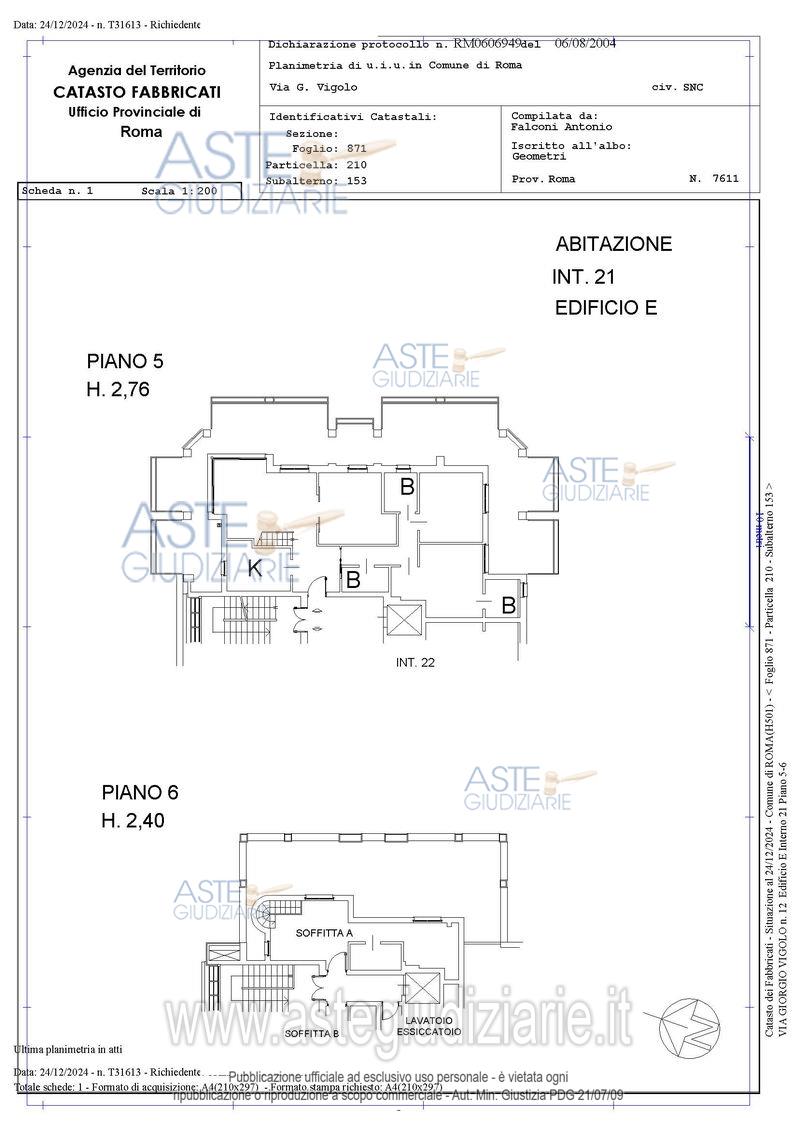 Vendita in attesa dell'emissione del nuovo bando d'asta. LOTTO 1: appartamento con soffitta siti al piano 5-6, composto al piano inferiore di soggiorno, cucina, due camere, due bagni, ripostiglio (ex w.c.) e disimpegno nonché di un ampio terrazzo a livello; al piano sesto, raggiungibile tanto mediante una scala interna al soggiorno quanto mediante ingresso autonomo dal vano scala condominiale, si individua una soffitta costituita da due vani ed un bagno (da ripristinare), oltre ampio terrazzo a livello ad uso esclusivo per complessivi mq 163,50 conv + box auto . Ultimo prezzo base € 553.000,00 (offerta minima € 414.750,00). Giudice Dott. Bianca Ferramosca. Professionista delegato alla vendita Not. Camillo Verde. Custode Giudiziario Ivg Di Roma - Email "pvp@visiteivgroma.it"; Tel. 0689569801. Rif. Tribunale di Roma - Espropriazione immobiliare (cartabia) n. 929/2023