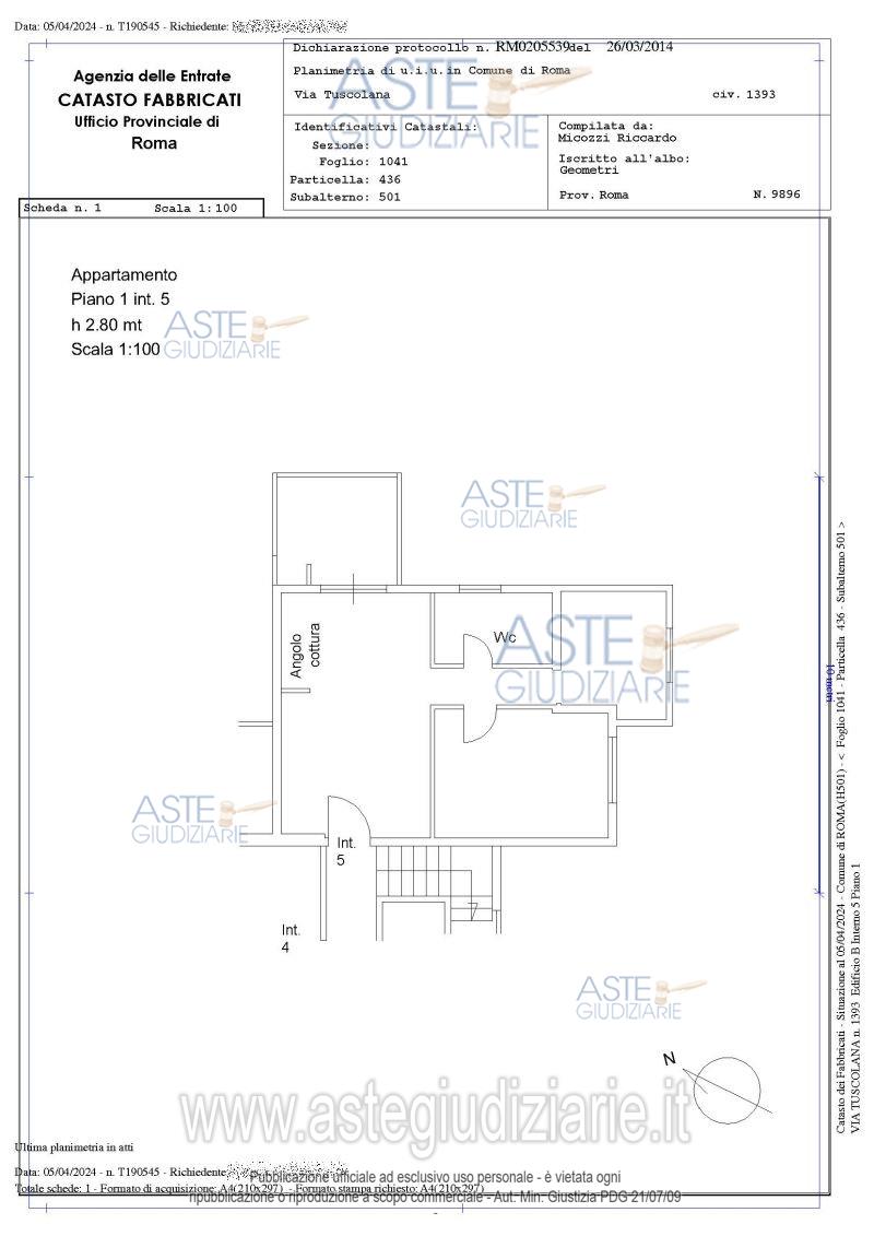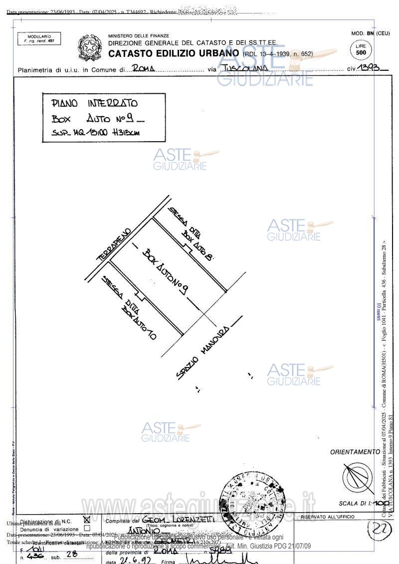 Vendita all'asta Senza incanto, con gara telematica asincrona - LOTTO UNICO: Piena proprietà su appartamento in Roma, via Tuscolana n. 1393, Ed. B, int. 5, Piano 1 e relativo box pertinenziale int. 9 posto al piano seminterrato.L’appartamento risulta composto da: salotto con angolo cottura, due camere, un bagno un corridoio ed un balcone per complessivi mq. 57. il box ha una superficie netta di 15 mq . Prezzo base € 138.000,00 (offerta minima € 103.500,00). Data inizio operazioni di vendita: 10/06/2026 ore 14:00. Giudice Lauropoli. Professionista delegato alla vendita Avv. Anna Paladin. Custode Giudiziario Ivg Di Roma Srl - Email "pvp.richiestavisita@ivgroma.it"; Tel. 0689569801. Rif. Tribunale di Roma - Espropriazione immobiliare (cartabia) n. 1171/2023