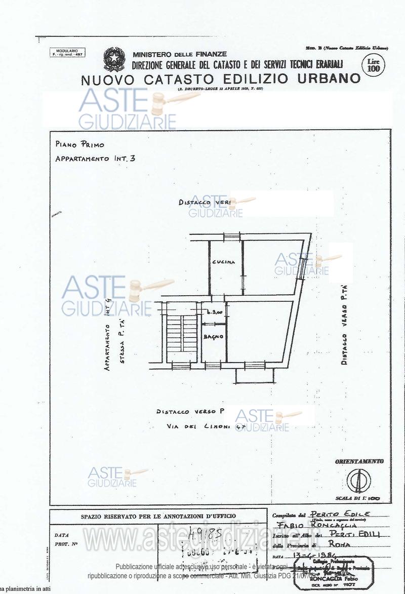 Vendita all'asta Senza incanto, con gara telematica asincrona - LOTTO UNICO: Quota pari a 1/1 del diritto di proprietà su porzione di fabbricato condominiale in Comune di Roma, via dei Limoni n. 45, e precisamente-unità immobiliare ad uso civile abitazione posta al piano primo contraddistinta con l’int. 3, catastalmente composta da: ingresso, soggiorno, bagno, una camera e un balcone. Prezzo base € 75.000,00 (offerta minima € 56.250,00). Data inizio operazioni di vendita: 15/09/2026 ore 14:00. Giudice: Raffaele Russo.
