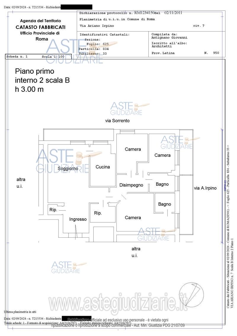 Vendita all'asta Senza incanto, con gara telematica asincrona - LOTTO UNICO: Appartamento ubicato a Roma (RM) - Via Ariano Irpino 7, scala B, interno 2, piano primo, composto da ingresso, soggiorno, cucina abitabile, tre stanze da letto, due servizi igienici, due ripostigli e due balconi camere, per complessivi mq. 95,00. Prezzo base € 263.000,00 (offerta minima € 197.250,00). Data inizio operazioni di vendita: 16/12/2025 ore 11:00. Giudice Iappelli. Professionista delegato alla vendita Avv. Maria D'angelo. Custode Giudiziario Ivg Di Roma Srl - Email "pvp@visiteivgroma.it"; Tel. 0689569801. Rif. Tribunale di Roma - Contenzioso civile n. 9896/2025