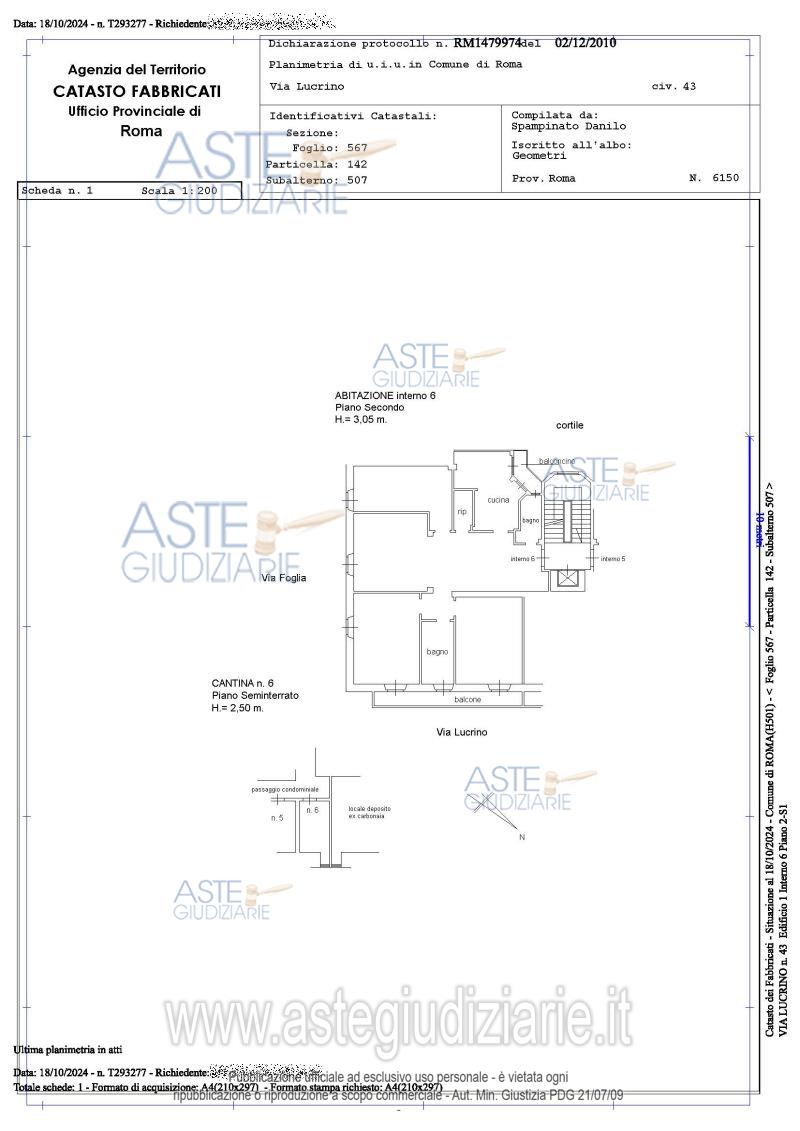 Vendita all'asta Senza incanto, con gara telematica asincrona - LOTTO UNICO: Appartamento in Roma , via Lucrino, 43, edificio 1, piano 2-S1, interno 6, di mq. 120 con balcone e cantina in catasto al foglio 567, particella 142, subalterno 507 (già particella 209, subalterno 4), categoria A/3, rendita € 1.373,78. Prezzo base € 511.000,00 (offerta minima € 383.250,00). Data inizio operazioni di vendita: 13/01/2026 ore 15:00. Giudice Dott. Romolo Ciufolini. Professionista delegato alla vendita Avv. Luca Bernardini. Custode Giudiziario Ivg Di Roma Srl - Email "pvp@visiteivgroma.it"; Tel. 0689569801. Rif. Tribunale di Roma - Esecuzione immobiliare post legge 80 n. 383/2022