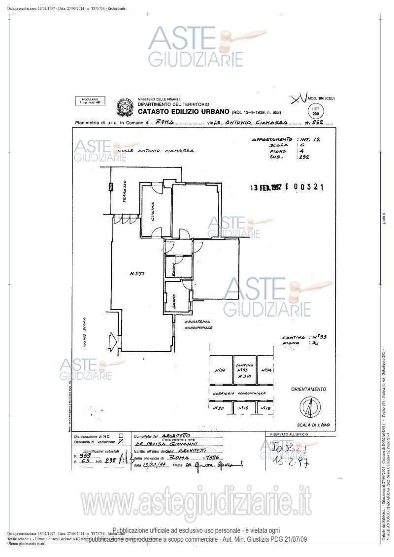 Vendita all'asta Senza incanto, con gara telematica asincrona - LOTTO UNICO: Appartamento per civile abitazione in Roma, zona Romanina, viale Antonio Ciamarra, 262, piano S1-4, interno 12, scala C, di 80 mq., e cantina al piano S1 identificata con il n. 95, censito al catasto fabbricati del medesimo comune al foglio 959, particella 65, subalterno 292, categoria A/2. Prezzo base € 161.000,00 (offerta minima € 120.750,00). Data inizio operazioni di vendita: 20/01/2026 ore 14:00. Giudice Dott. Bianca Ferramosca. Professionista delegato alla vendita Avv. Luca Bernardini. Custode Giudiziario Ivg Di Roma Srl - Email "pvp@visiteivgroma.it"; Tel. 0689569801. Rif. Tribunale di Roma - Espropriazione immobiliare (cartabia) n. 1181/2024
