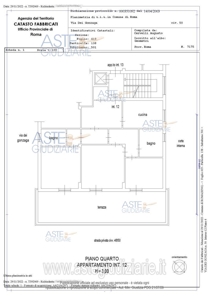 Vendita all'asta Senza incanto, con gara telematica asincrona - LOTTO 3: Bene N° 4 in perizia - quota pari 1/1 del diritto di piena proprietà su appartamento sito in Roma (RM) - VIA DEI GONZAGA n. 50, interno 12, piano 4. Prezzo base € 234.404,00 (offerta minima € 175.803,00). Data inizio operazioni di vendita: 20/01/2026 ore 09:00. Giudice D'ambrosio. Professionista delegato alla vendita Avv. Claudio Nicolais. Custode Giudiziario Ivg Di Roma Srl - Email "pvp@visiteivgroma.it"; Tel. 0689569801. Rif. Tribunale di Roma - Esecuzione immobiliare post legge 80 n. 63/2021