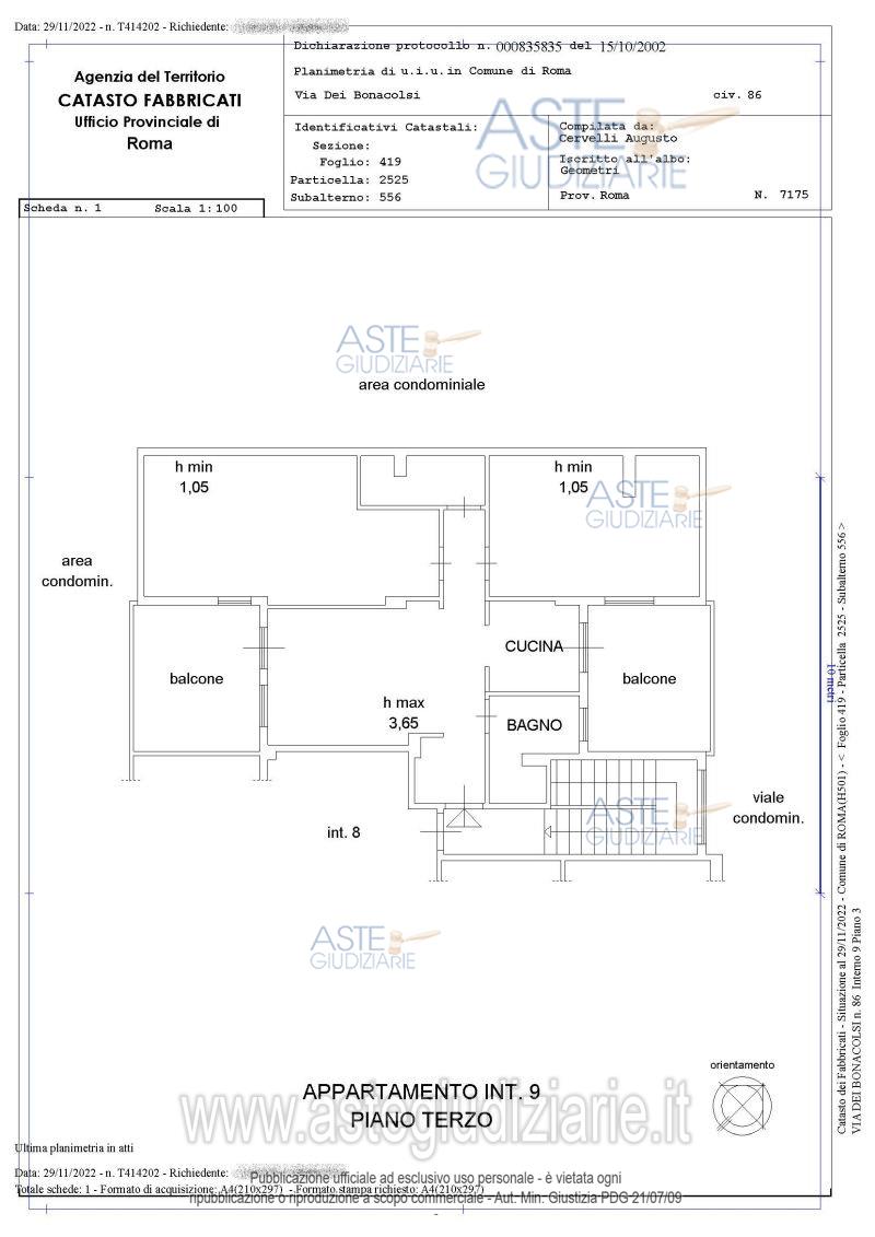 Vendita all'asta Senza incanto, con gara telematica asincrona - LOTTO 10: Bene N° 14 in perizia - quota pari 1/1 del diritto di piena proprietà su appartamento sito in Roma (RM) - via dei Bonacolsi 86, interno 9, piano 3. Prezzo base € 191.294,00 (offerta minima € 143.470,50). Data inizio operazioni di vendita: 20/01/2026 ore 09:00. Giudice D'ambrosio. Professionista delegato alla vendita Avv. Claudio Nicolais. Custode Giudiziario Ivg Di Roma Srl - Email "pvp@visiteivgroma.it"; Tel. 0689569801. Rif. Tribunale di Roma - Esecuzione immobiliare post legge 80 n. 63/2021