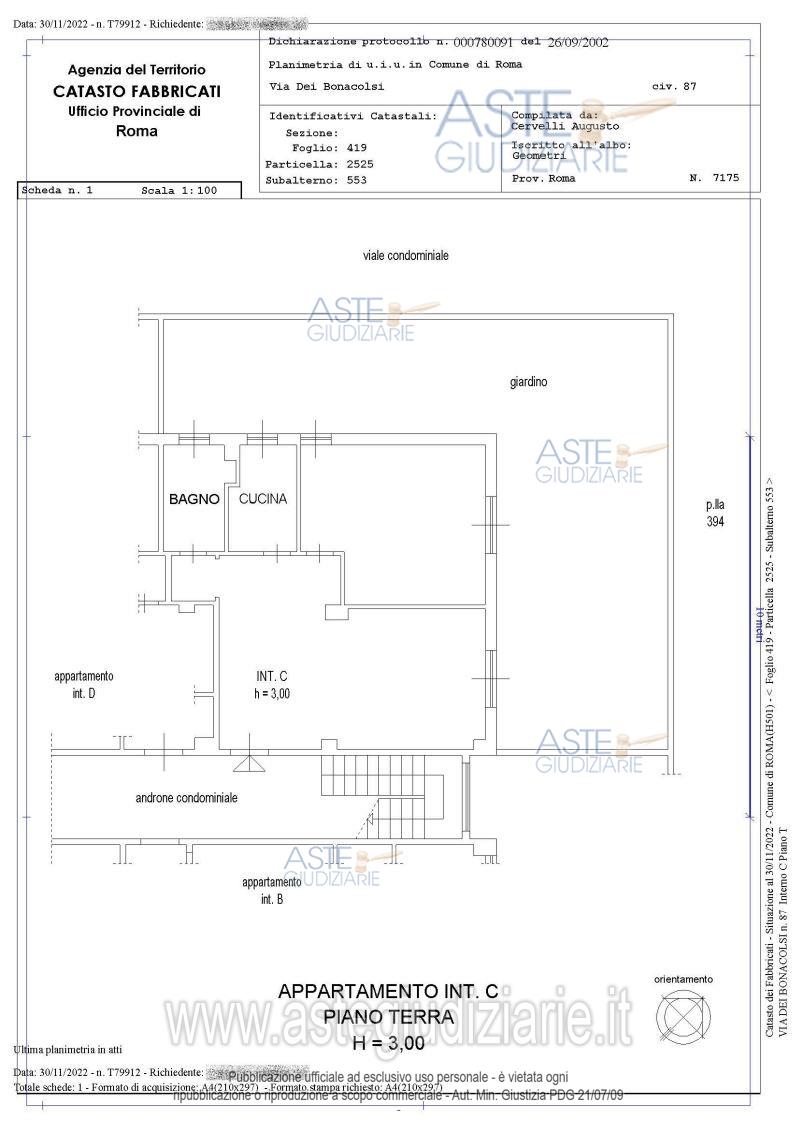 Vendita all'asta Senza incanto, con gara telematica asincrona - LOTTO 14: Bene N° 21 in perizia - quota pari 1/1 del diritto di piena proprietà su appartamento sito in Roma (RM) - via dei Bonacolsi 87, interno C, piano T. Prezzo base € 121.888,00 (offerta minima € 91.416,00). Data inizio operazioni di vendita: 20/04/2026 ore 09:00. Giudice Dott. Federica D'ambrosio. Professionista delegato alla vendita Avv. Claudio Nicolais. Custode Giudiziario Ivg Di Roma Srl - Email "pvp@visiteivgroma.it"; Tel. 0689569801. Rif. Tribunale di Roma - Esecuzione immobiliare post legge 80 n. 63/2021