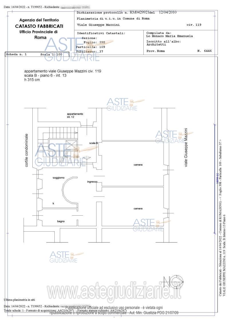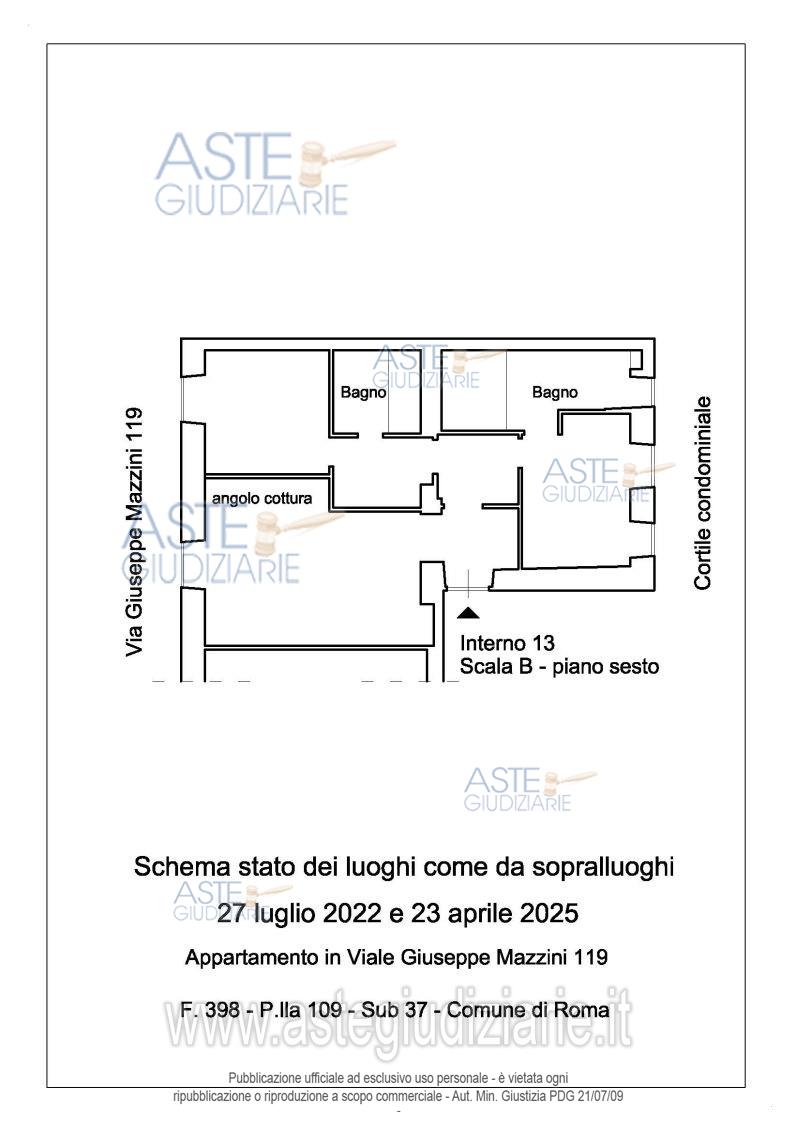 Vendita all'asta Senza incanto, con gara telematica asincrona - LOTTO 2: Appartamento in Roma, al piano sesto catastale (o quinto sul rialzato) di Viale Giuseppe Mazzini 119 scala B, int. 13, composto da ingresso, soggiorno con angolo cottura e affaccio su Viale Giuseppe Mazzini, corridoio, prima stanza con affaccio su cortile e bagno interno con finestra, disimpegno che conduce al bagno e alla seconda stanza, bagno privo di finestra, seconda stanza con affaccio su Viale Giuseppe Mazzini. Il tutto per una superficie convenzionale complessiva di mq. 86,00 circa. Prezzo base € 430.000,00 (offerta minima € 322.500,00). Data inizio operazioni di vendita: 12/02/2026 ore 10:00. Giudice Dott. Miriam Iappelli. Professionista delegato alla vendita Avv. Roberto Tartaglia. Custode Giudiziario I.V.G Di Roma S.R.L. Istituto Vendite Giudiziarie - Email "pubblicita@ivgroma.it"; Tel. 06 83751500. Rif. Tribunale di Roma - Esecuzione immobiliare post legge 80 n. 164/2021