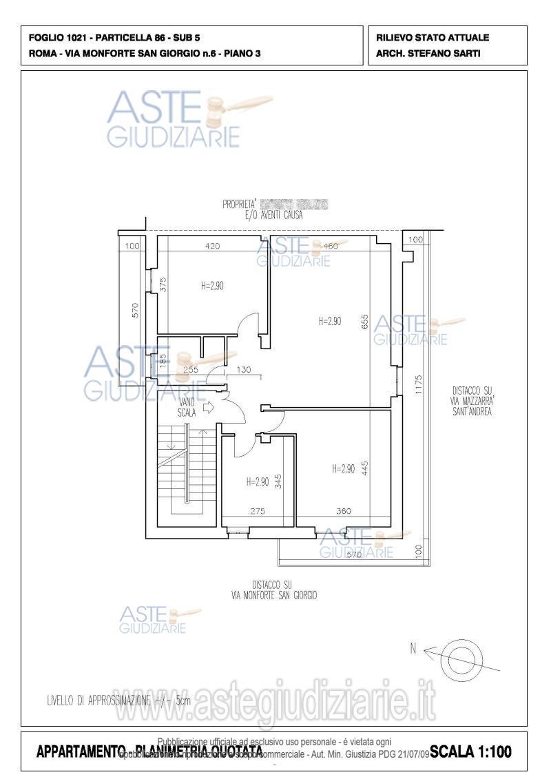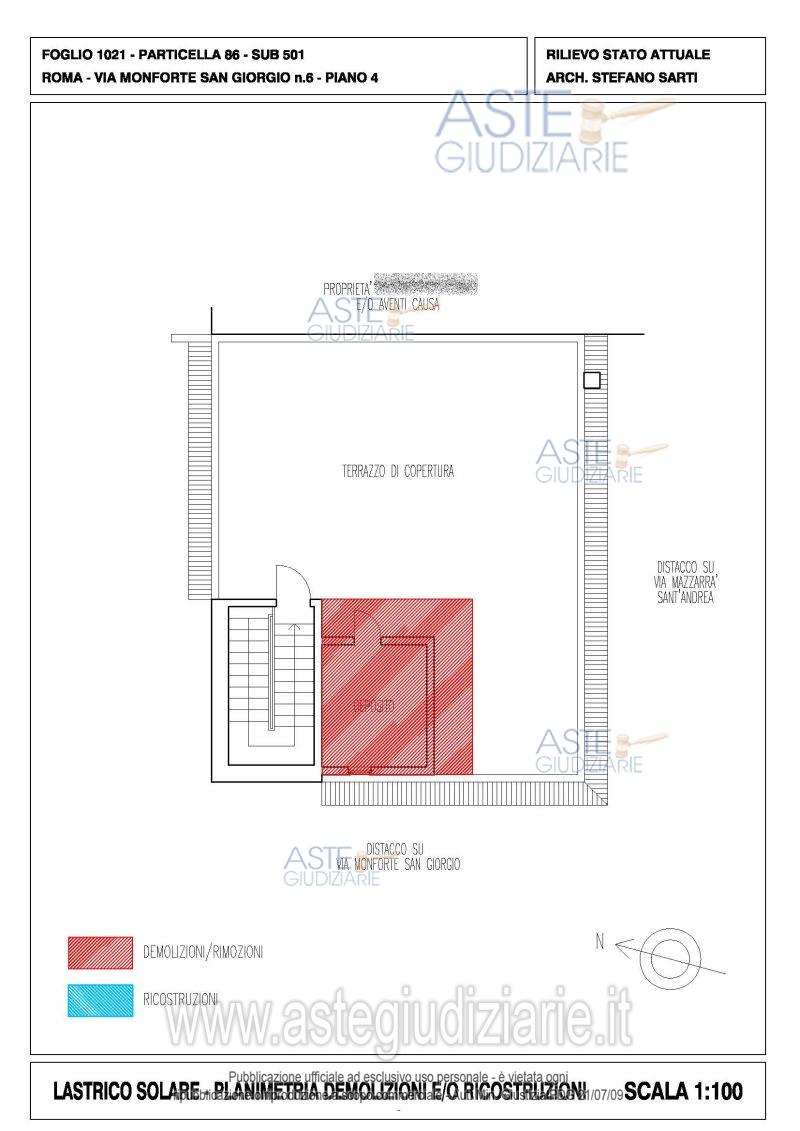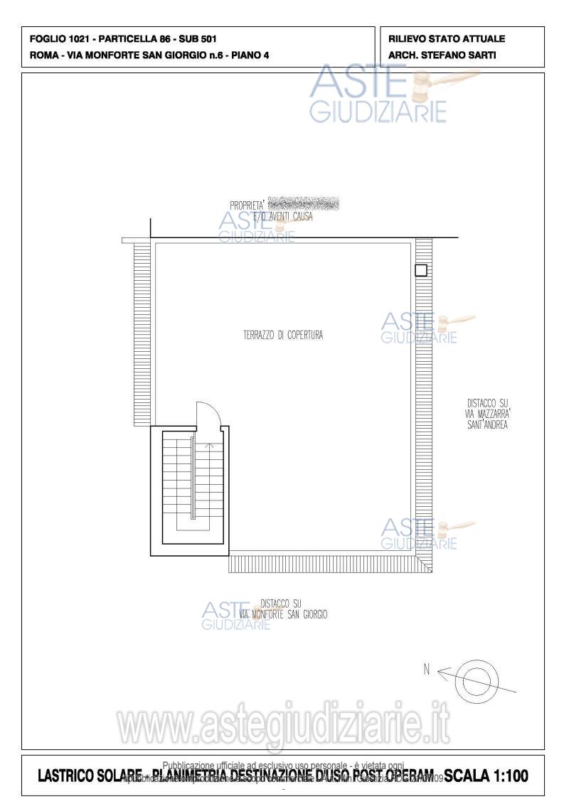 Vendita all'asta Senza incanto, con gara telematica asincrona - LOTTO UNICO: Quota pari ad 1/1 del diritto di piena proprietà su appartamento sito in Roma (RM), Via Monforte San Giorgio n. 6, piano 3, interno 3, con terrazzo esclusivo di pertinenza al piano 4. Prezzo base € 123.200,00 (offerta minima € 92.400,00). Data inizio operazioni di vendita: 15/04/2026 ore 14:00. Giudice Dott. Giuseppe Lauropoli. Professionista delegato alla vendita Avv. Massimiliano Catapano. Custode Giudiziario Ivg Di Roma Srl - Email "pvp@visiteivgroma.it"; Tel. 0689569801. Rif. Tribunale di Roma - Espropriazione immobiliare (cartabia) n. 102/2024