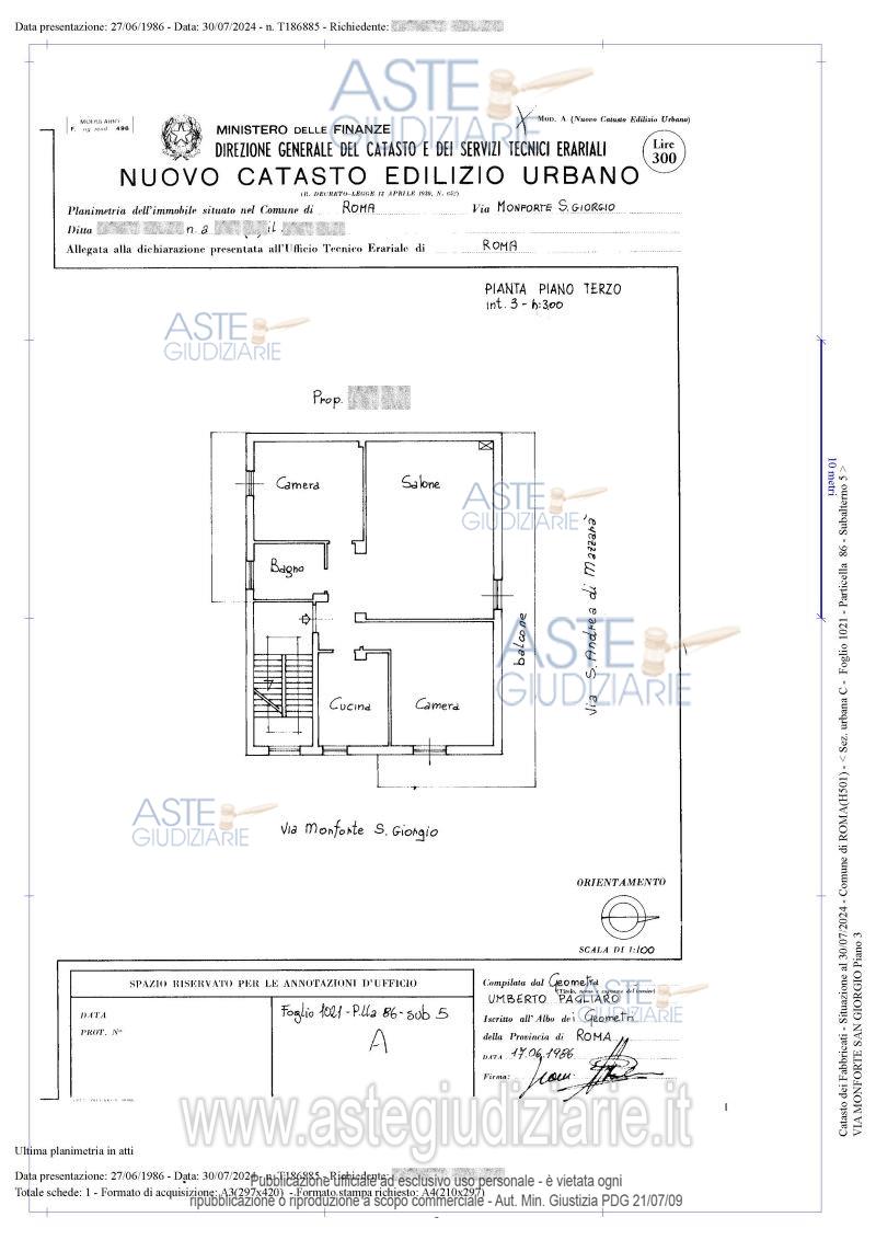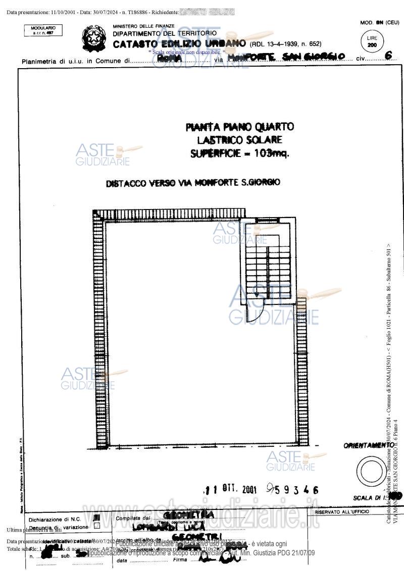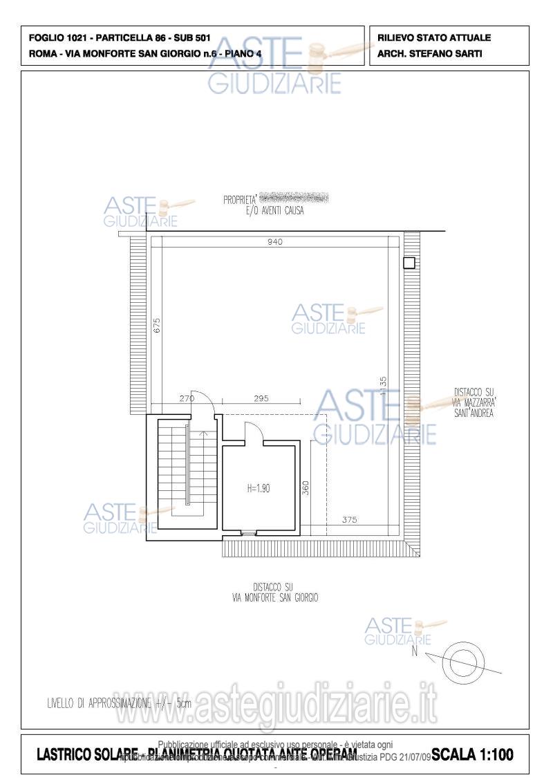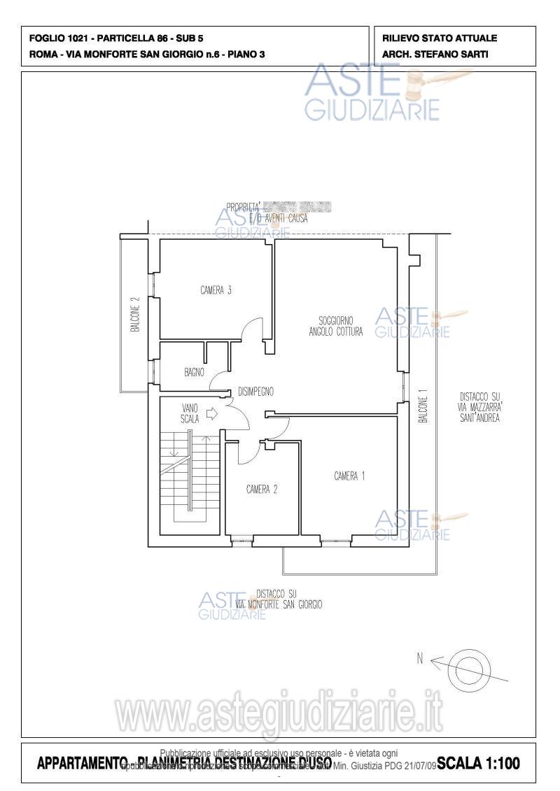 Vendita all'asta Senza incanto, con gara telematica asincrona - LOTTO UNICO: Quota pari ad 1/1 del diritto di piena proprietà su appartamento sito in Roma (RM), Via Monforte San Giorgio n. 6, piano 3, interno 3, con terrazzo esclusivo di pertinenza al piano 4. Prezzo base € 123.200,00 (offerta minima € 92.400,00). Data inizio operazioni di vendita: 15/04/2026 ore 14:00. Giudice Dott. Giuseppe Lauropoli. Professionista delegato alla vendita Avv. Massimiliano Catapano. Custode Giudiziario Ivg Di Roma Srl - Email "pvp@visiteivgroma.it"; Tel. 0689569801. Rif. Tribunale di Roma - Espropriazione immobiliare (cartabia) n. 102/2024