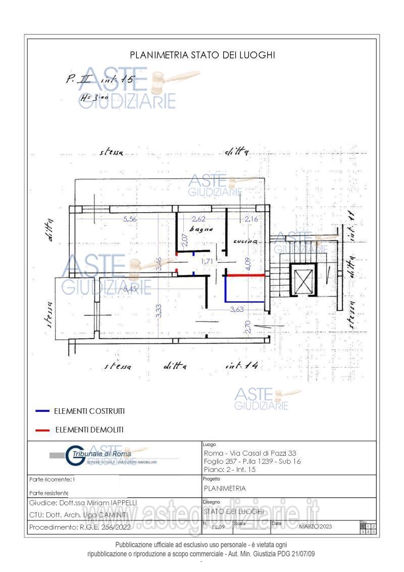 Vendita all'asta Senza incanto, con gara telematica asincrona - LOTTO 8: Nuda proprietà (l’usufruttuario è nato l’11.10.1949) di appartamento ubicato a Roma (RM) - via Casal dei Pazzi 33, int. 15, piano 2. Prezzo base € 111.000,00 (offerta minima € 83.250,00). Data inizio operazioni di vendita: 05/03/2026 ore 14:00. Giudice Iappelli. Professionista delegato alla vendita Not. Giovanni Berionne. Custode Giudiziario I.V.G Di Roma S.R.L. - Email "pvp@visiteivgroma.it"; Cell. 0689569801. Rif. Tribunale di Roma - Esecuzione immobiliare post legge 80 n. 256/2022